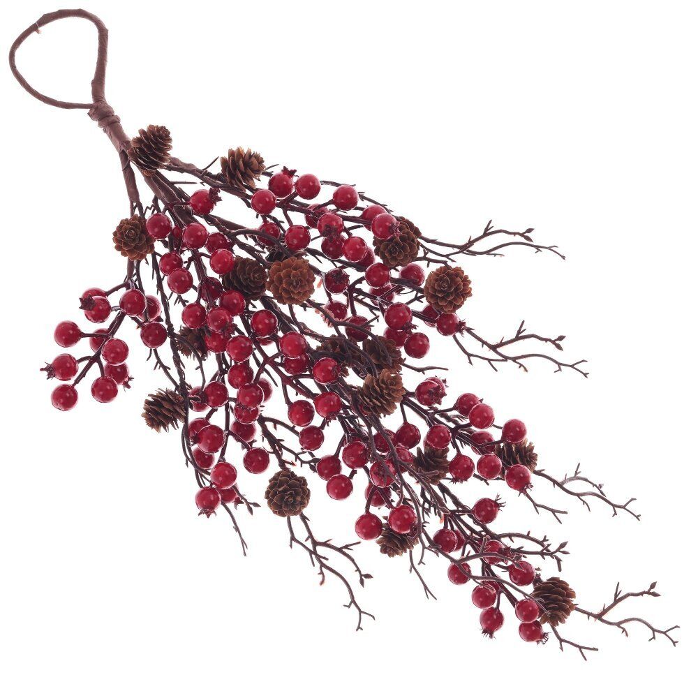 Это декоративное изделие в виде ветки станет оригинальным акцентом в интерьере или праздничном оформлении. Ветка искусно декорирована реалистичными красными ягодами, придающими ей яркий и нарядный вид. Благодаря подвесу в виде петли, ветку легко разместить на двери, стене, каминной полке или использовать как часть новогодней композиции. Такой элемент декора добавит уюта и теплоты в любое пространство, создавая атмосферу праздника. Материалы изделия устойчивы к выцветанию и деформации, что делает его многоразовым и долговечным.
