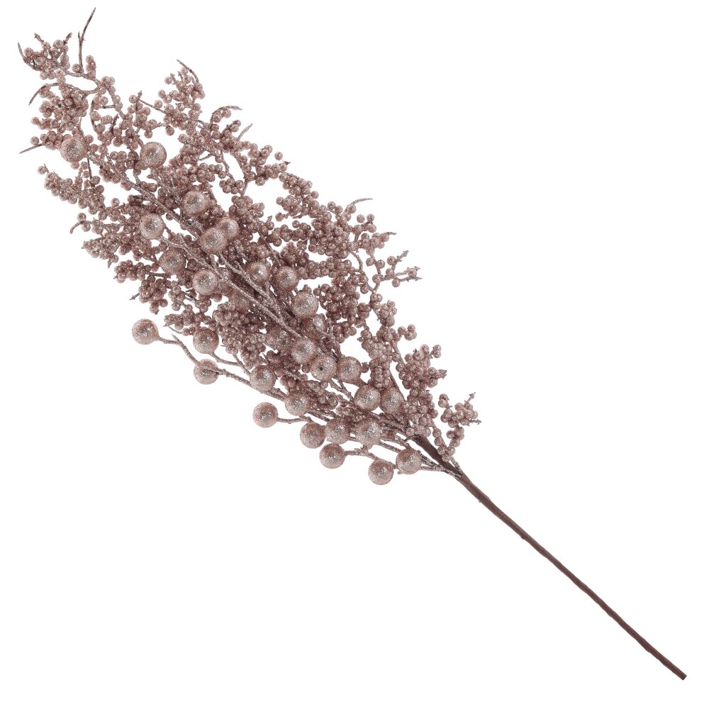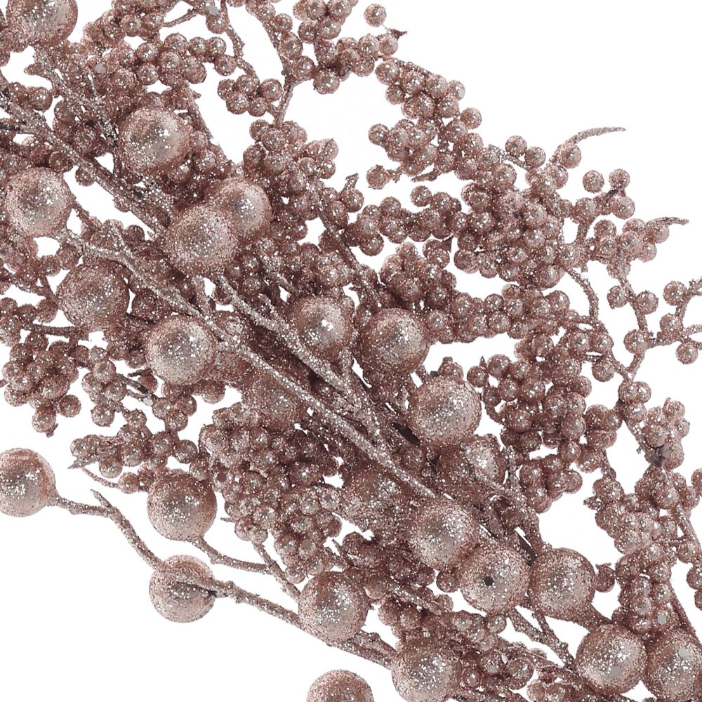 Декоративная новогодняя ветка с крупными и мелкими ягодами из пенопласта, покрытыми блестящим розовым глиттером, идеально впишется в различные интерьерные концепции. Это универсальное изделие способно стать украшением для оригинальных новогодних композиций, использоваться для декорирования елки или же просто стать стильным акцентом, разместив его в элегантной вазе. Благодаря своему изысканному дизайну и яркому внешнему виду, эта ветка добавит немного волшебства в ваш интерьер, создавая уютную новогоднюю обстановку.
