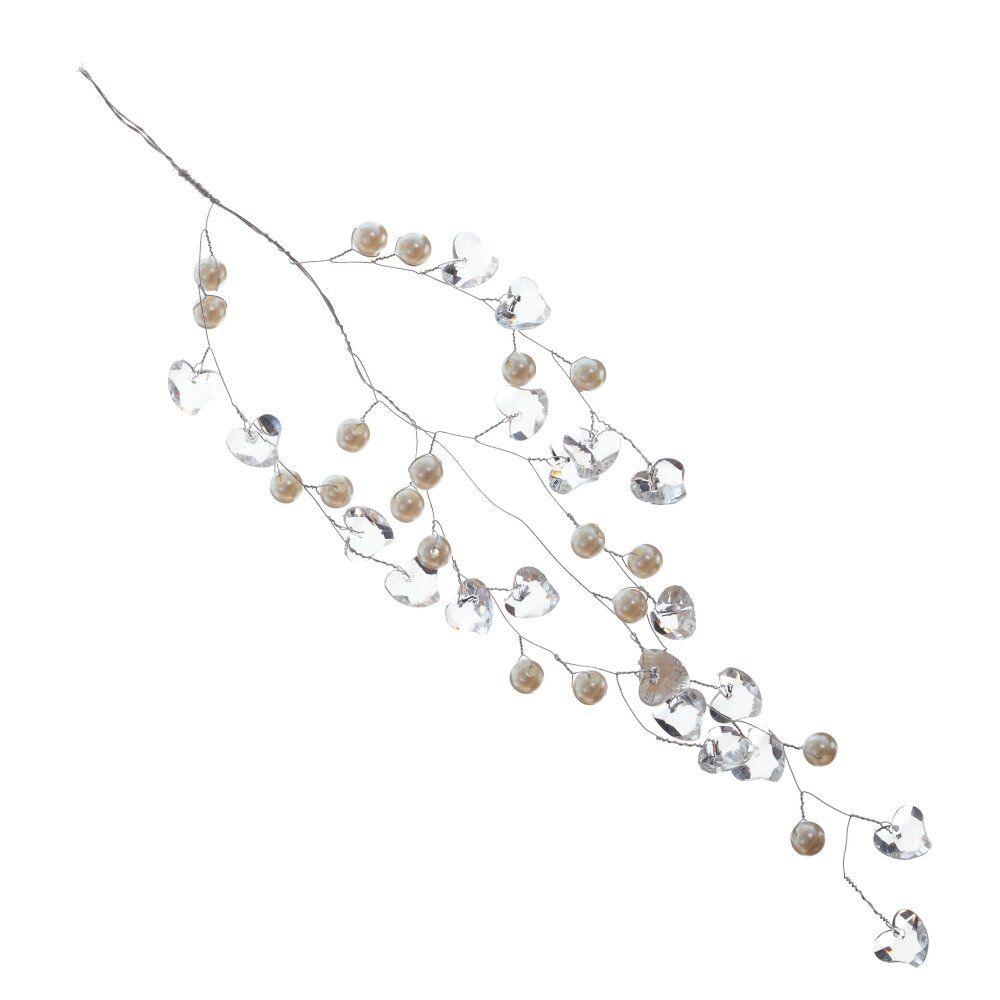 Элегантная веточка из тонкой серебристой проволоки, усыпанная жемчужными бусинами и "хрустальными" сердечками, создает волшебную атмосферу блеска и изящества. Благодаря своему изящному дизайну она станет прекрасным акцентом в новогоднем интерьере, создавая атмосферу волшебства и праздничного веселья.