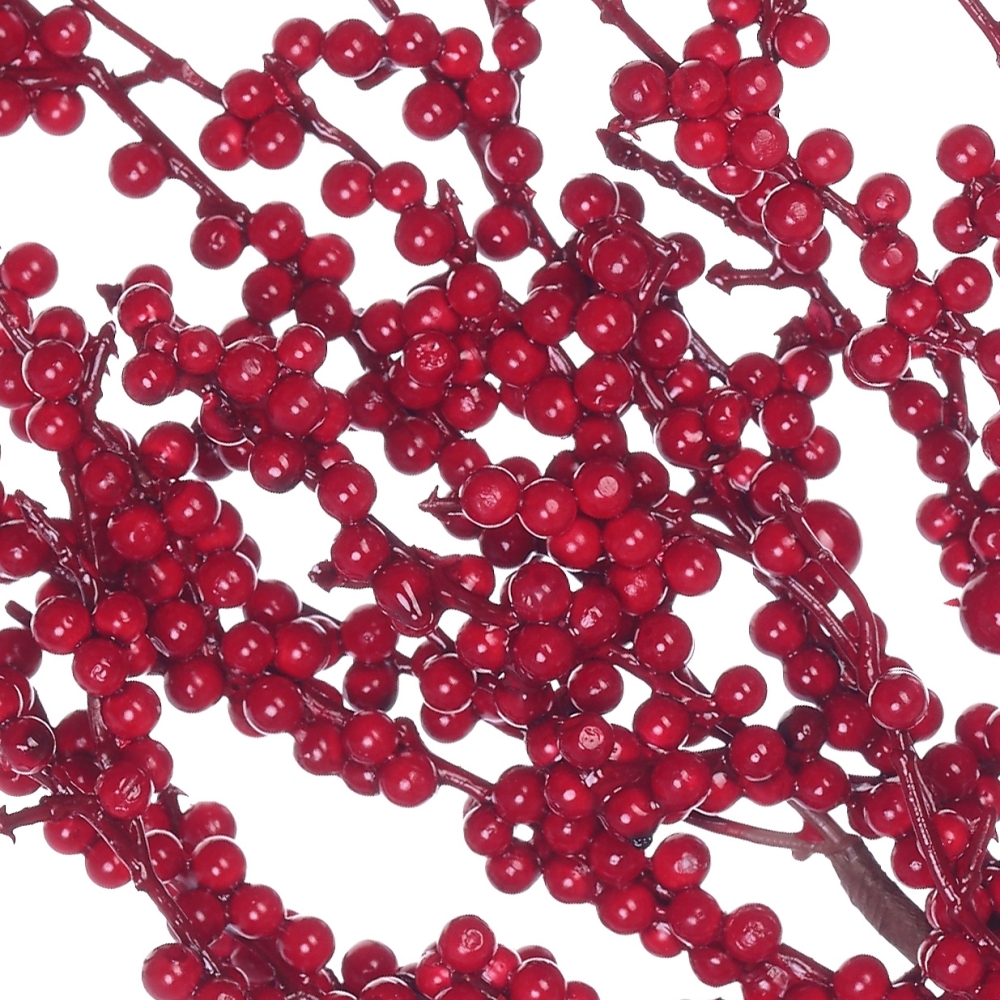 Очень эффектно смотрятся полыхающие красные ягоды. Эта контрастная ветка, несомненно, заслуживает почётного места в праздничной композиции.