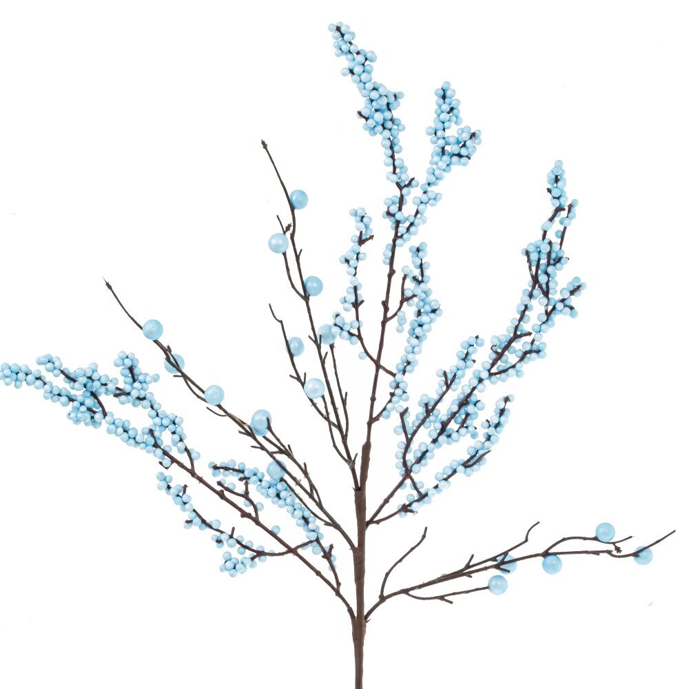 Декоративная новогодняя ветка с крупными и мелкими голубыми ягодами из пенопласта, высотой 85 см, идеально подходит для творческих интерьерных решений. Это универсальное изделие можно использовать для создания уникальных новогодних композиций, для оформления елки или просто поставить в стильную вазу, чтобы придать помещению праздничное настроение. Благодаря своему изысканному дизайну и яркому внешнему виду, эта ветка добавит в ваш интерьер нотку волшебства и создаст уютную атмосферу новогоднего праздника.