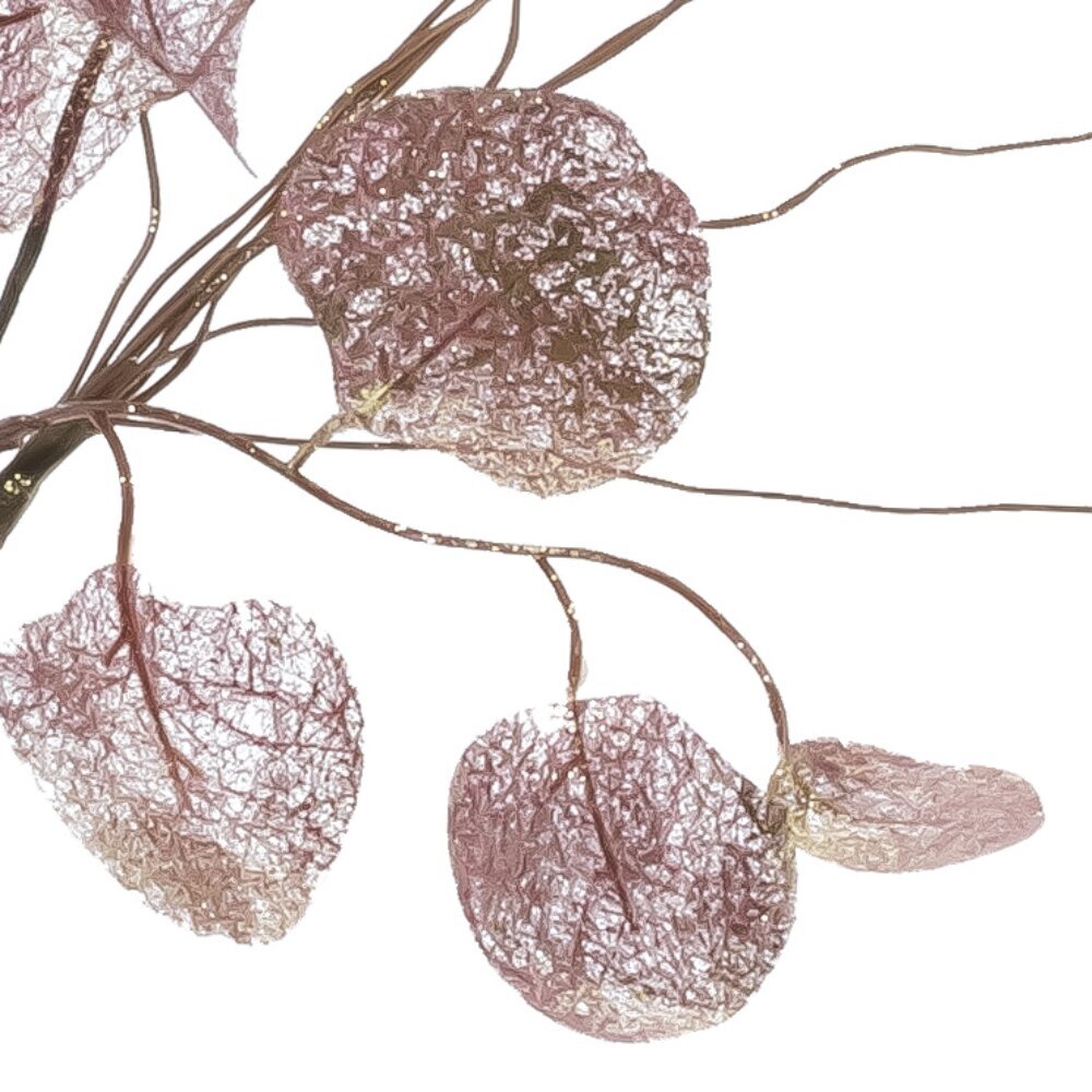 Декоративная ветка "Розовая нежность" – утонченное и изысканное украшение для вашего интерьера. Эта ветка имеет длину 75 см. Нежные округлые розовые листья с легким золотым напылением придают этой ветке особую изысканность. Внутри ветки имеется проволока, которая позволяет изгибать ее в нужное положение. Этот элемент декора станет прекрасным дополнением к новогодней композиции в вазе, икебане или на елке, создавая атмосферу уюта и волшебства.