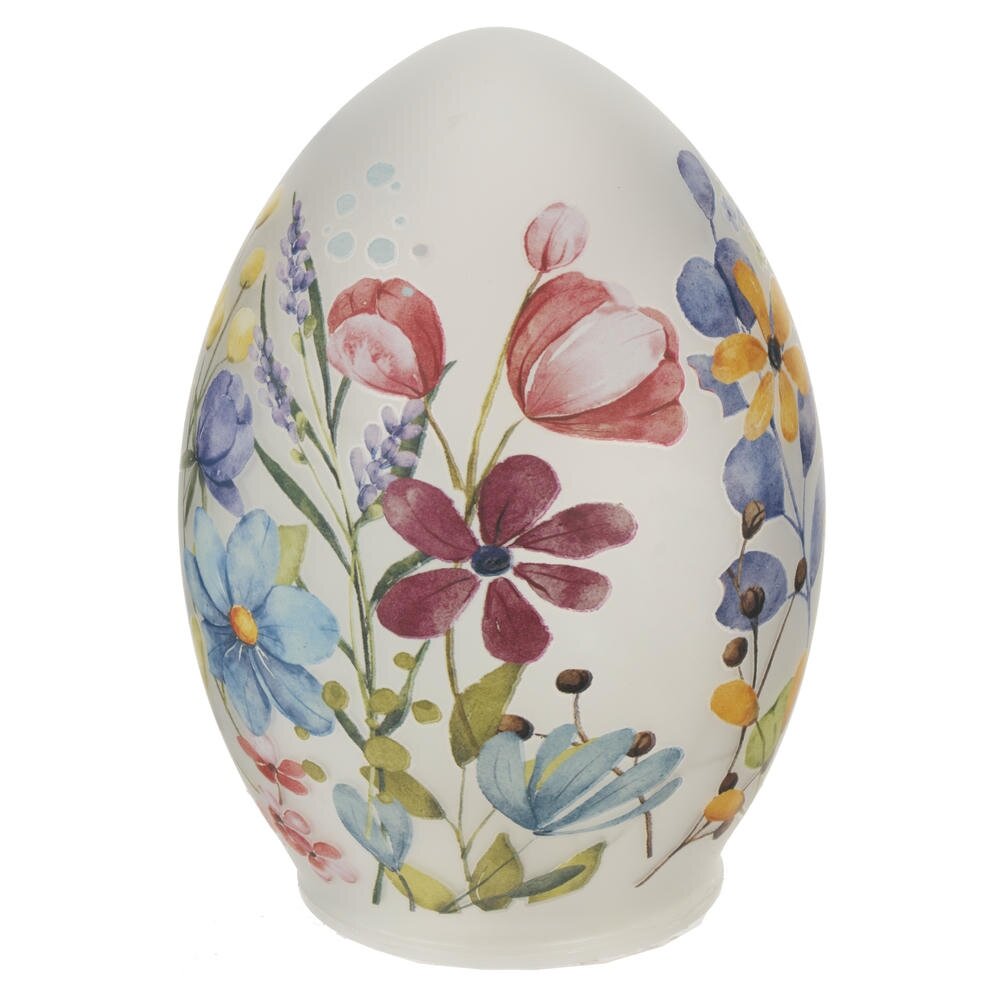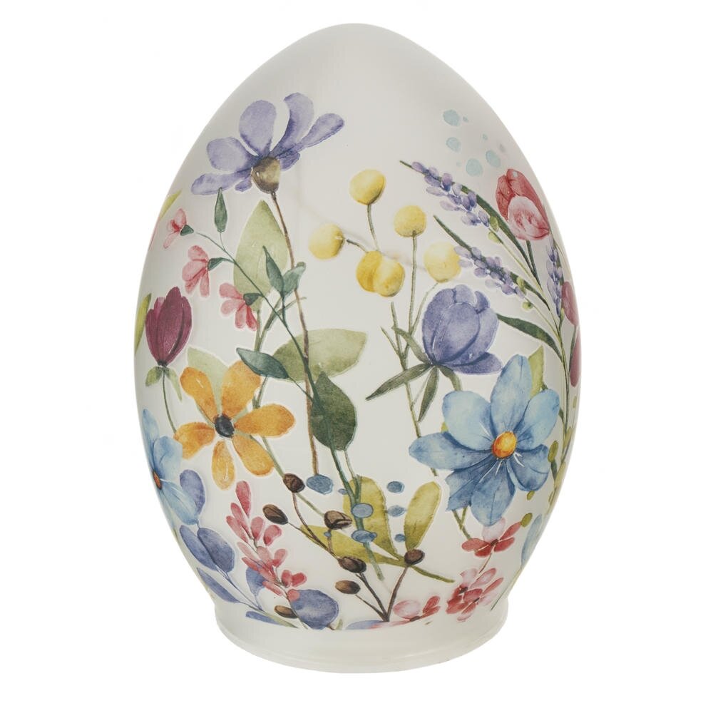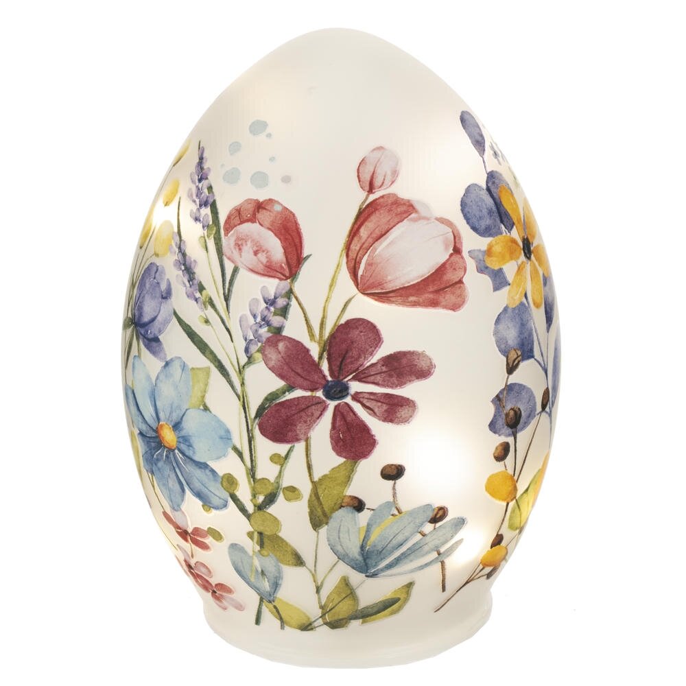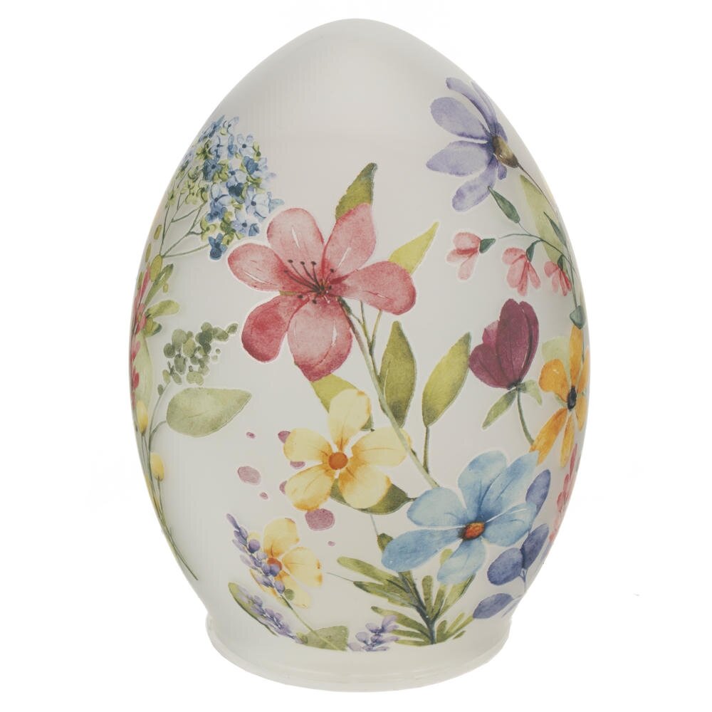 Декоративное изделие «Яйцо» с подсветкой – изящный пасхальный акцент для вашего дома. Корпус выполнен из гладкого матового стекла в форме яйца и украшен нежным декором весенних цветов в мягких пастельных тонах. Встроенная светодиодная подсветка мягко рассеивается через стекло, создавая уютное тёплое сияние на праздничном столе, подоконнике или в детской. Работает от 3 батареек типа AAA (в комплект не входят), что позволяет легко разместить декор в любом месте без привязки к розетке. Такое стеклянное яйцо станет стильным украшением к Пасхе, дополнит композицию с другими праздничными элементами и послужит прекрасным подарком для родных и друзей.