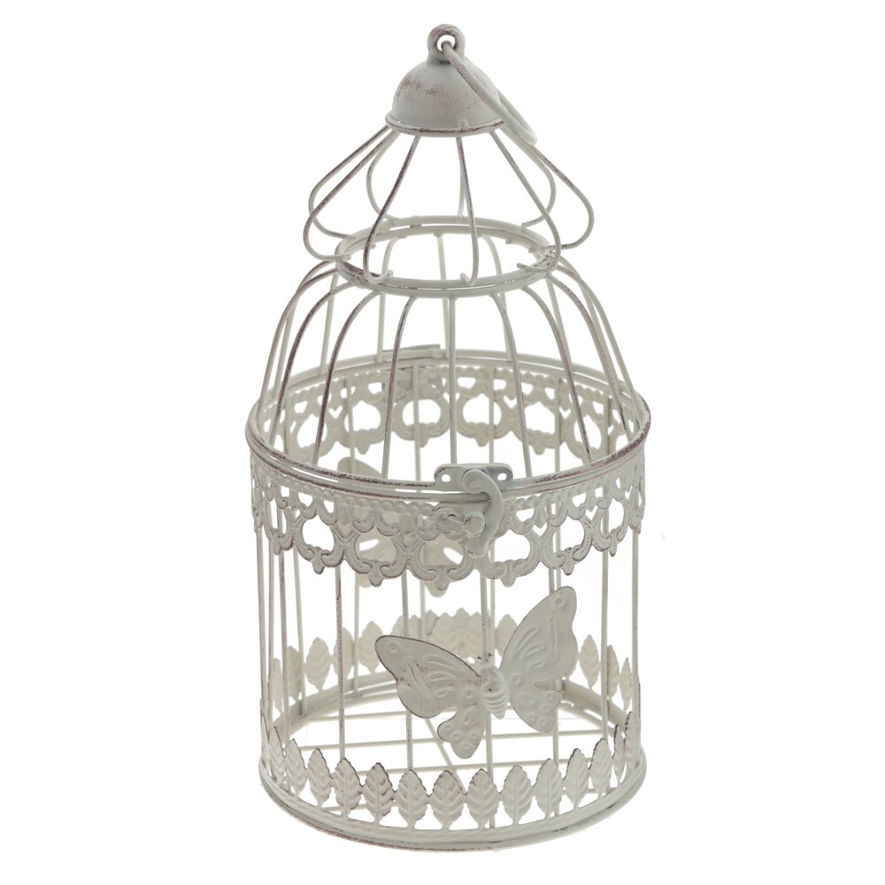 Эта декоративная клетка белого цвета выполнена из металла. Она имеет потертости, которые придают ей винтажный вид и добавляют характер. Клетка может использоваться для декорирования стола, полки или другой поверхности, для хранения различных предметов, таких как свечи, цветы, а так же для создания декоративных композиций. В целом, это очень универсальный и стильный декоративный предмет, который добавит изюминку в любой дом.