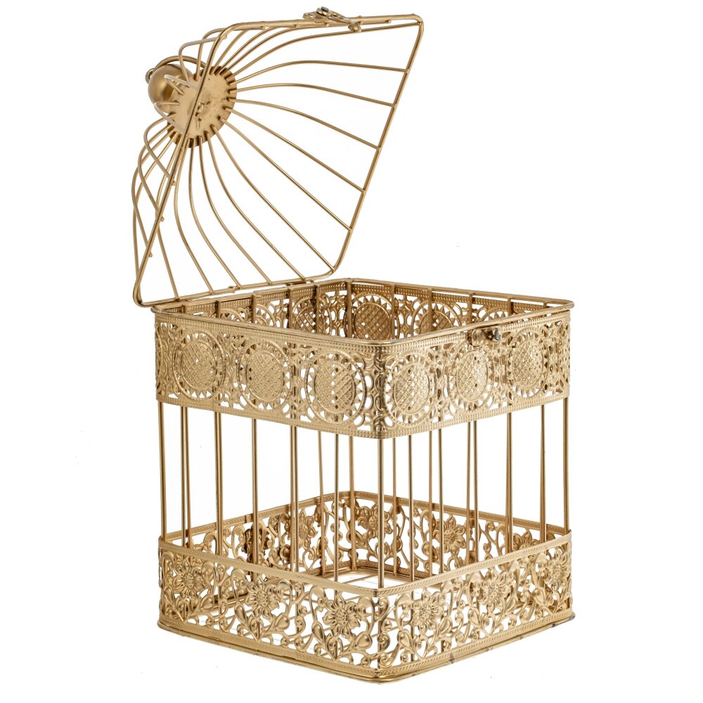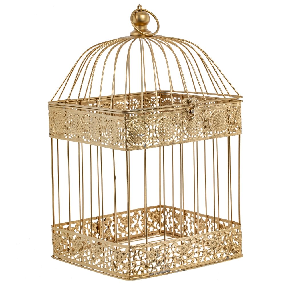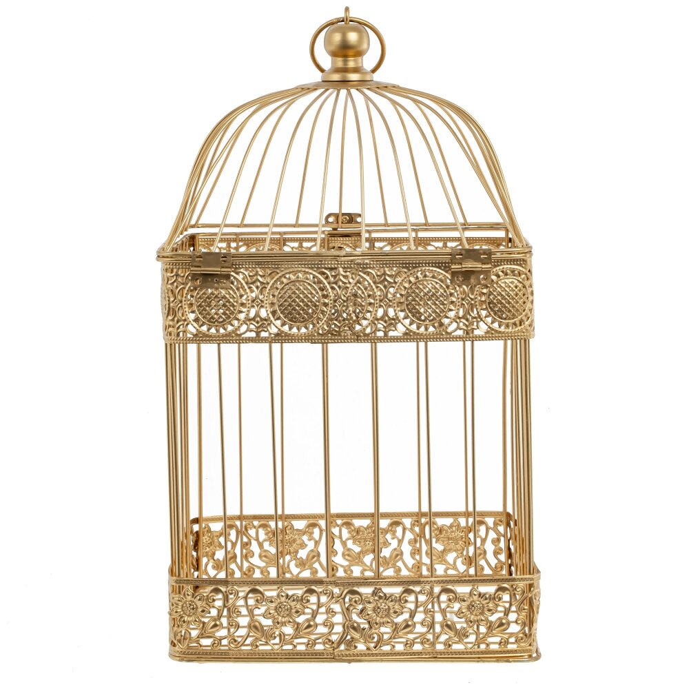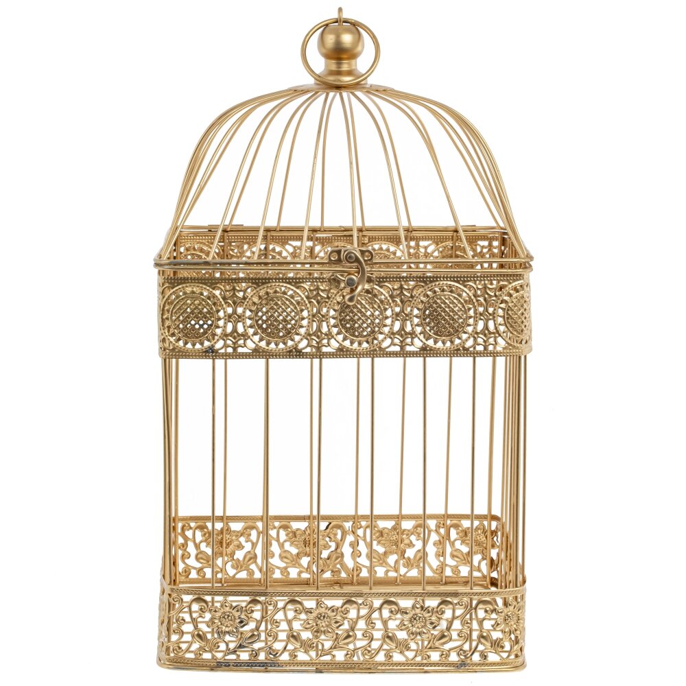 Декоративная клетка изготовлена из прочного металла, который обеспечивает ей долгую службу и сохраняет первоначальный вид на протяжении длительного времени. Ее золотистый цвет придает ей изысканности и роскоши, делая ее превосходным дополнением к любому интерьеру. Благодаря кольцу для подвешивания, она может быть удобно размещена в любом месте вашего дома, добавив стильности и изысканности.