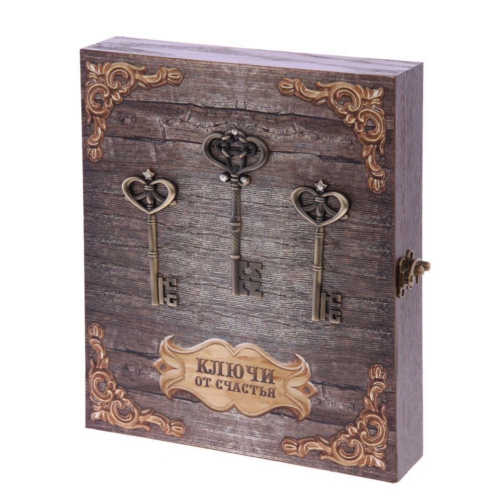Ключница закрытого вида с пятью крючками, изготовлена из МДФ, металла, полимерных материалов. Размер: L22 W5 H28 см, упаковка-коробка.