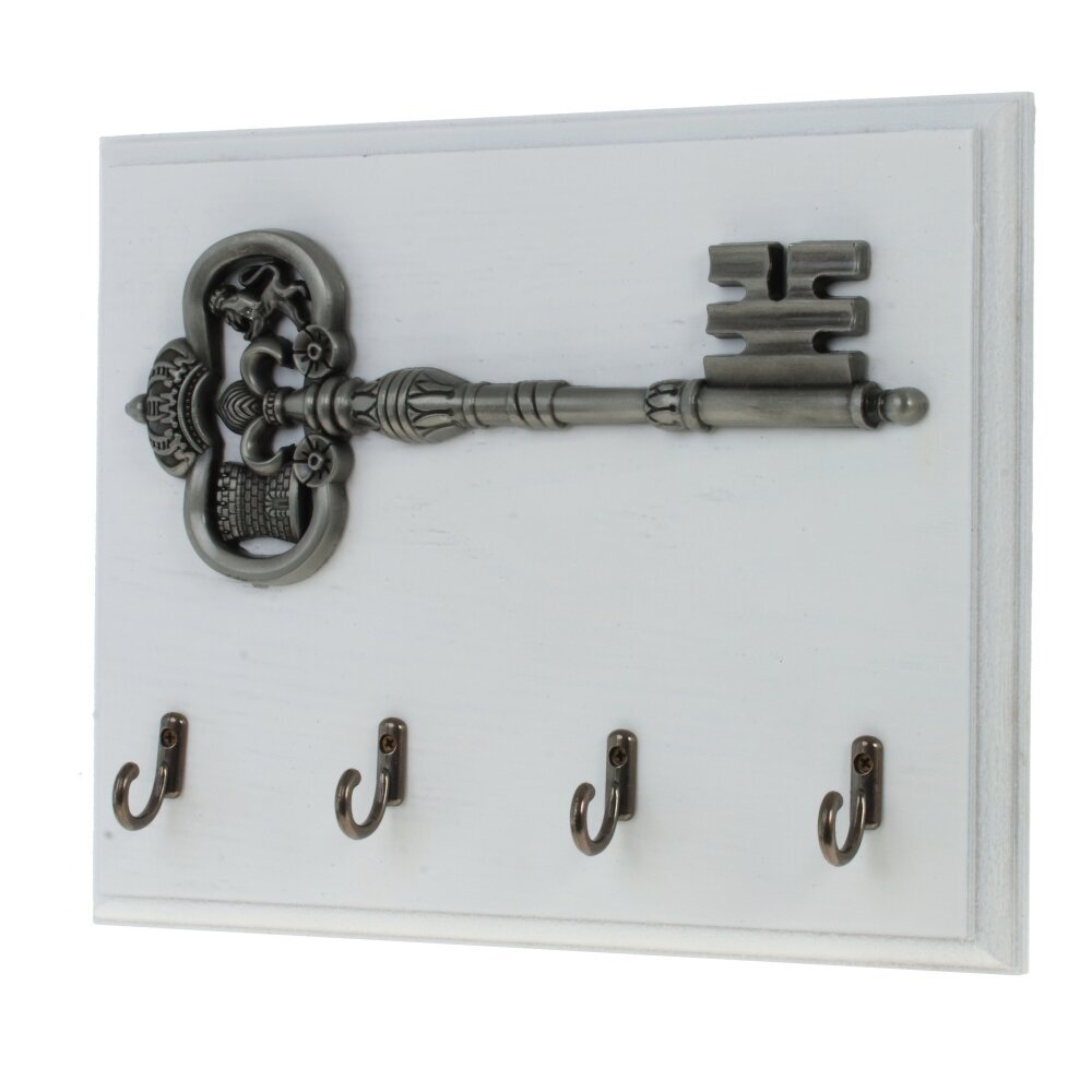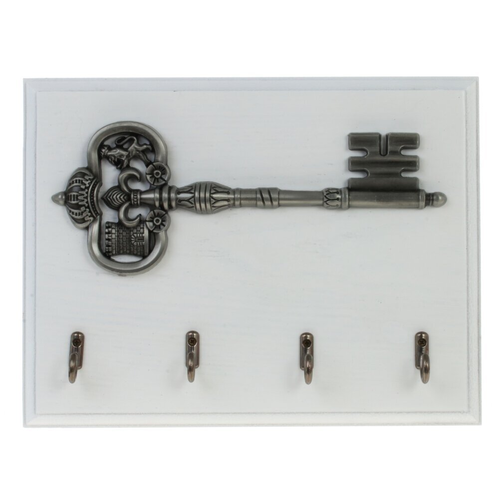 Ключница настенная, открытого типа, с четырьмя металлическими крючками и декором в виде ключа. Ключница – предмет не только красивый, но и функциональный, поэтому ей найдется место и в офисе, и в квартире, и в загородном доме.