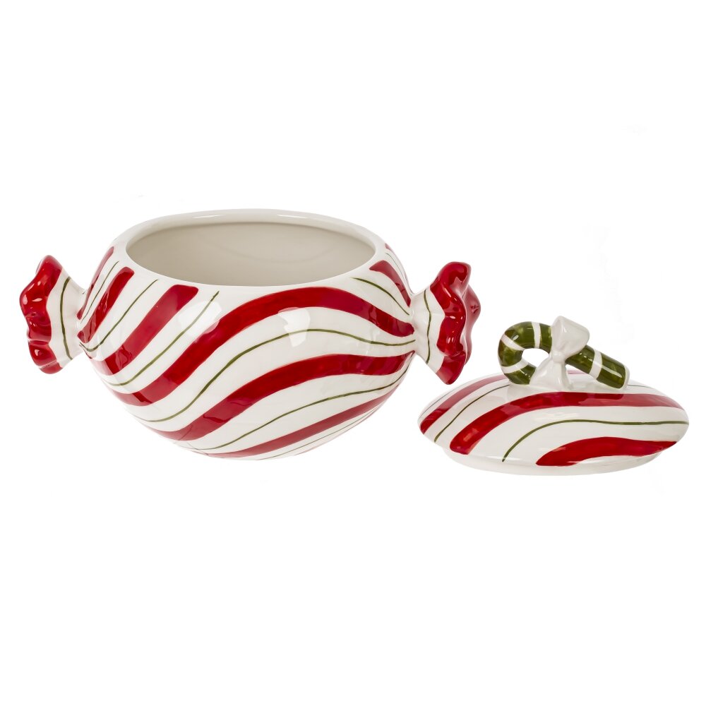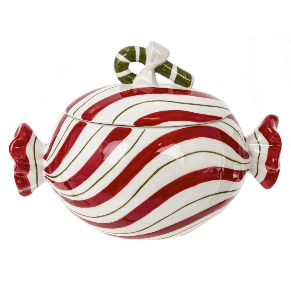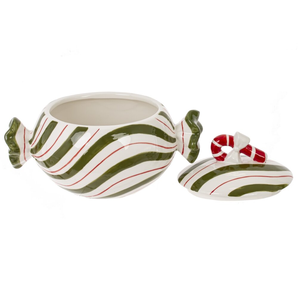 Конфетница из керамики в форме конфеты — яркое и праздничное украшение для любого стола. Ее оригинальный дизайн сочетает красный и зеленый цвета на белом фоне, что создаёт традиционную новогоднюю атмосферу и дарит ощущение тепла и радости. Изделие выполнено из качественной керамики с гладкой, блестящей поверхностью, которая подчёркивает его праздничный стиль. Такая конфетница идеально подходит для подачи сладостей, печенья или небольших угощений, а также станет стильным декоративным элементом в интерьере. Это прекрасный подарок, который внесёт праздничное настроение и украсит любой дом в зимние праздники, создавая уют и праздничное настроение для всей семьи и гостей.