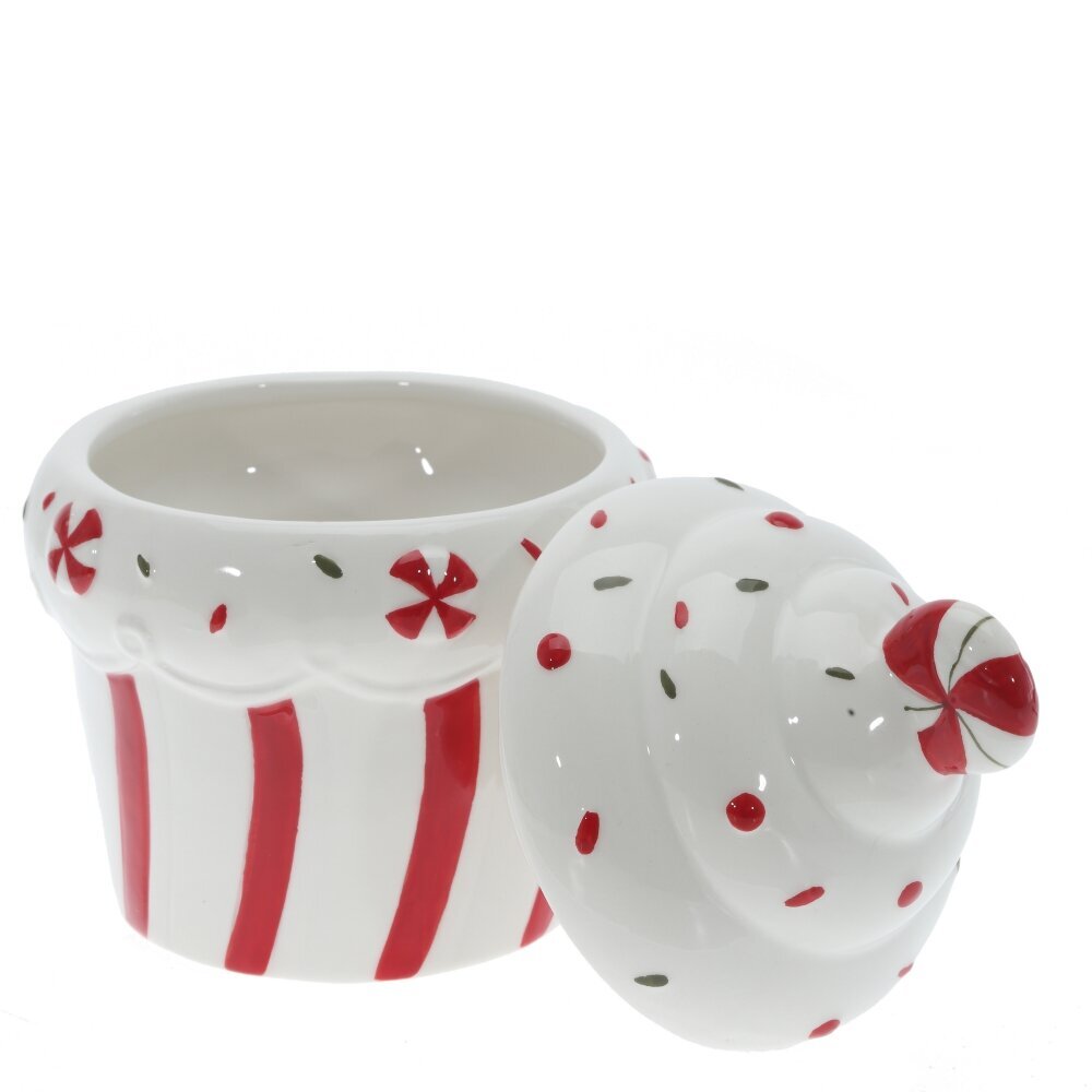 Керамическая конфетница в виде аппетитного пирожного в красно-белой гамме — это не только функциональный, но и декоративный элемент, который украсит кухню или праздничный стол. Её оригинальный дизайн, имитирующий сладкое лакомство с взбитыми сливками и глазурью, создает уютную атмосферу. Глянцевая поверхность подчёркивает насыщенность цвета и делает изделие особенно привлекательным при любом освещении. Красные и белые акценты придают конфетнице яркость, делая её идеальной для новогоднего, рождественского или тематического декора. Благодаря съёмной крышке и вместительной форме, она удобна для хранения конфет, печенья или других мелких сладостей. Эта конфетница станет не только стильным украшением интерьера, но и приятным подарком для любителей оригинальной посуды и праздничного настроения.