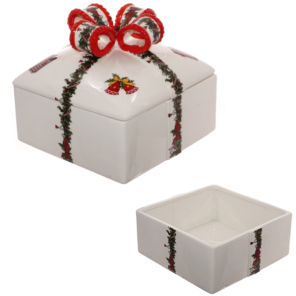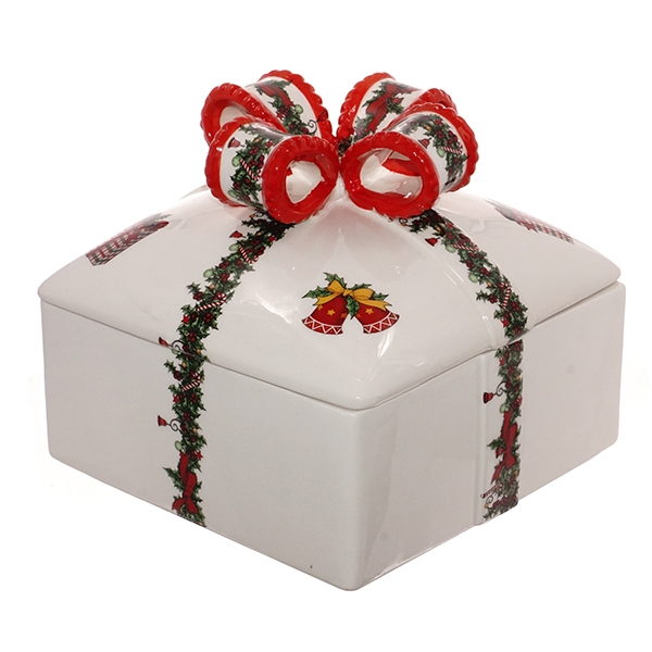 Конфетница керамическая изготовлена в виде подарочной коробочки, прекрасный подарок к торжеству.