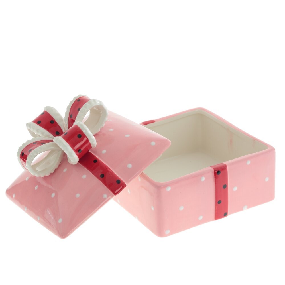 Конфетница в виде Коробки для подарков станет ярким украшением праздничной сервировки и отличным подарком на Новый год или Рождество. Она выполнена из прочной керамики и покрыта глазурью, которая придает ей нарядное глянцевое сверкание.
