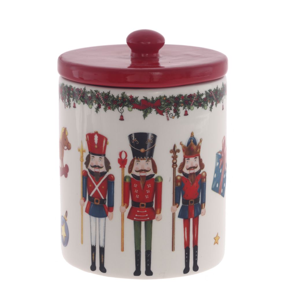 Прекрасная конфетница из Рождественской серии порадует Ваших гостей и станет изюминкой Новогоднего стола. Конфетница с красной крышкой из коллекции "Щелкунчик", изготовлена из керамики.