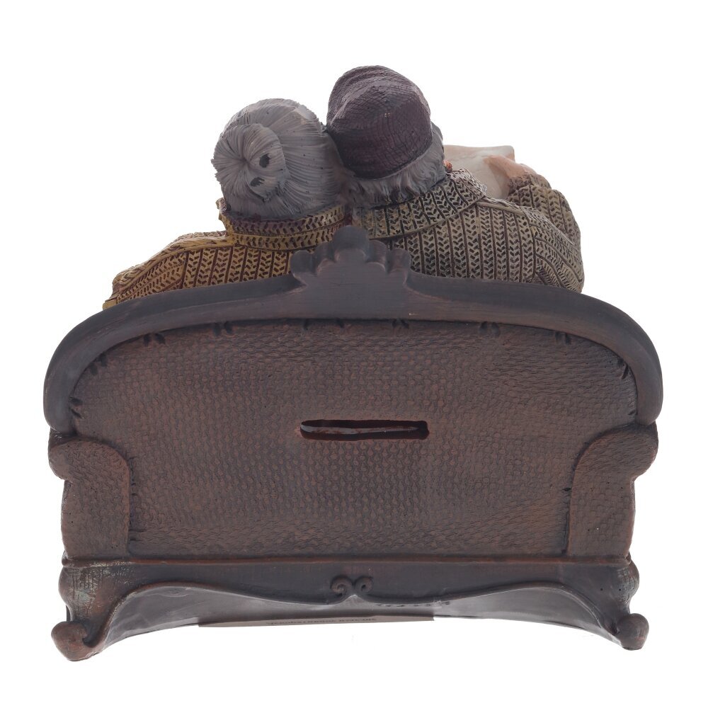 Очаровательная копилка «Бабушка с дедушкой» – трогательный декоративный акцент для дома и оригинальный способ хранить сбережения. Фигурка выполнена в виде пожилой пары, сидящей на уютном диванчике: бабушка в очках и вязаном кардигане, дедушка в кепке и свитере. В ассортименте 2 варианта композиции: с газетой и котом на коленях или с вязанием и трубкой. Тщательно прорисованные детали одежды и добрые улыбки создают атмосферу уюта и семейного тепла. Копилка станет прекрасным подарком родителям, бабушке и дедушке или символичным презентом на годовщину свадьбы, юбилей и любые семейные праздники.