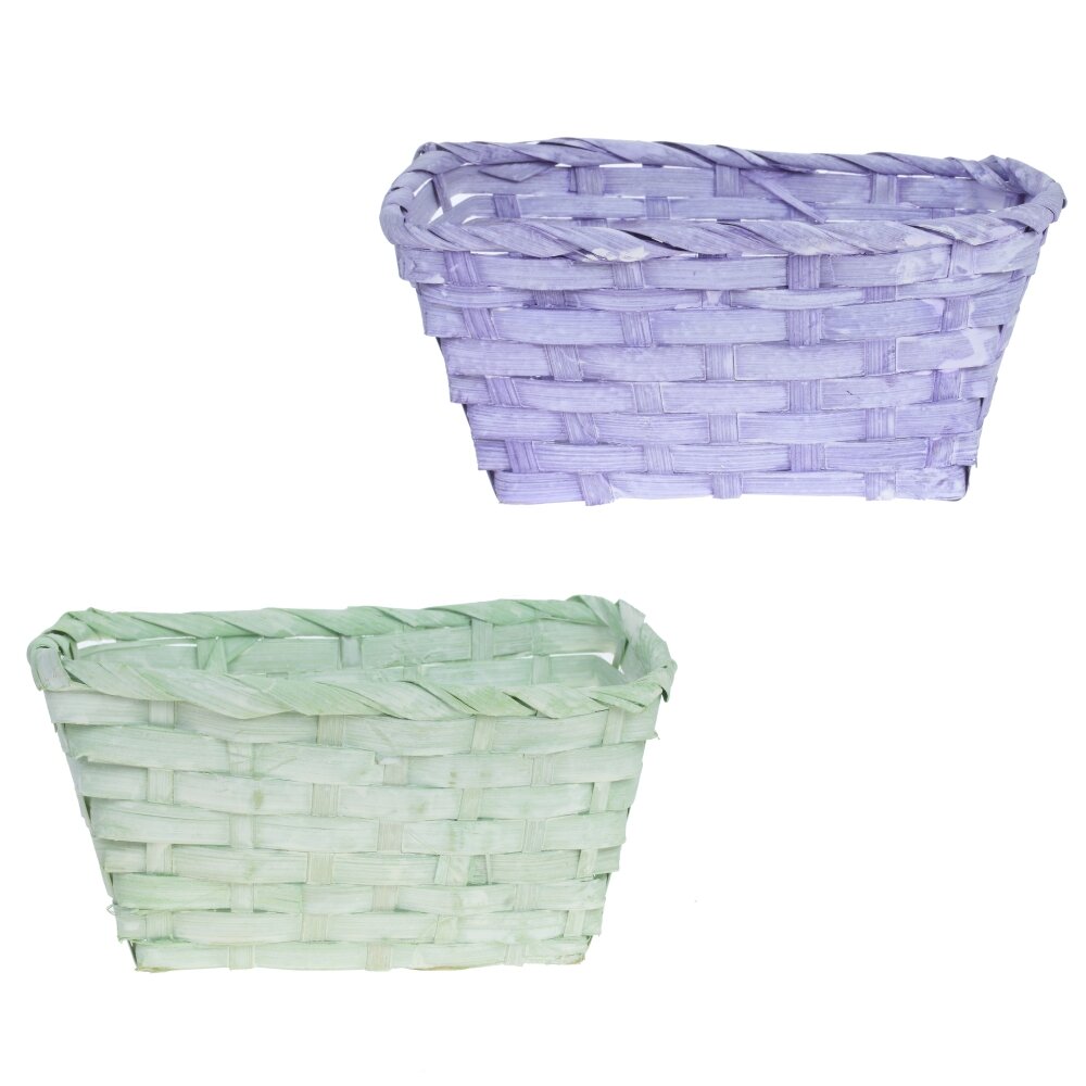 Нежная пасхальная корзина прямоугольной формы. Выполнена из тонких полосок плетённого материала, благодаря чему выглядит очень уютно и по?весеннему легко. Идеально подойдёт для оформления подарков к Пасхе: в неё удобно сложить крашеные яйца, кулич, сладости, небольшие сувениры или декоративную травку. Корзина станет стильным акцентом праздничного стола, фотозоны или витрины магазина, а также пригодится для хранения мелочей дома круглый год. Лёгкая, прочная, занимает минимум места при хранении. Отличный выбор для создания атмосферной пасхальной композиции или оригинального подарочного набора. Представлено в двух вариантах.