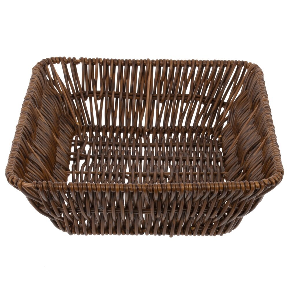 Корзина прямоугольной формы, выполненная из полимерных материалов, имитирующих традиционное плетение. Благодаря использованию современных полимеров корзина отличается высокой прочностью и долговечностью, не боится влаги и загрязнений.. Такая корзина идеально подходит для хранения различных продуктов, в том числе хлеба, фруктов или овощей. Лёгкая и простая в уходе, она прекрасно сохраняет форму даже при длительной эксплуатации. Эстетичный внешний вид и универсальность делают корзину из полимерных материалов отличным выбором для современной кухни и домашнего интерьера.
