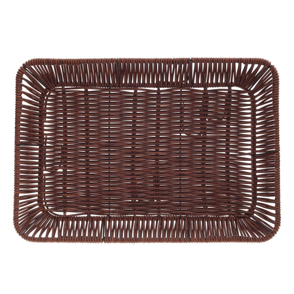 Корзина прямоугольной формы, выполненная из полимерных материалов, имитирующих традиционное плетение. Благодаря использованию современных материалов корзина отличается высокой прочностью и долговечностью, не боится влаги и загрязнений. Такая корзина идеально подходит для хранения различных продуктов, в том числе хлеба, фруктов или овощей. Лёгкая и простая в уходе, она прекрасно сохраняет форму даже при длительной эксплуатации. Эстетичный внешний вид и универсальность делают корзину из полимерных материалов отличным выбором для современной кухни и домашнего интерьера.