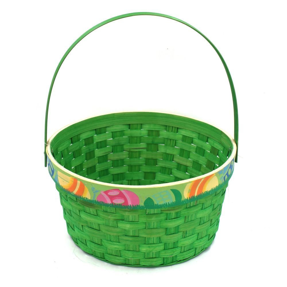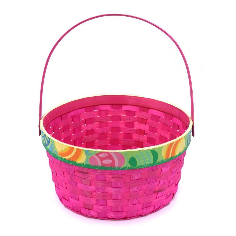Яркая пасхальная корзина для праздничных сюрпризов и подарков. Выполнена из прочного плетёного материала, лёгкая и удобная для переноски как взрослыми, так и детьми. По краю корзины – декоративная лента с пасхальными яйцами и весенними мотивами, которая создаёт праздничное настроение и идеально дополняет интерьер. Корзина представлена в двух вариантах: нежно?зелёном и насыщенном розовом цвете. Подходит для сбора пасхальных яиц, сладостей, небольших игрушек и оформления подарочных наборов, а также как элемент декора для фотосессий и сервировки стола.