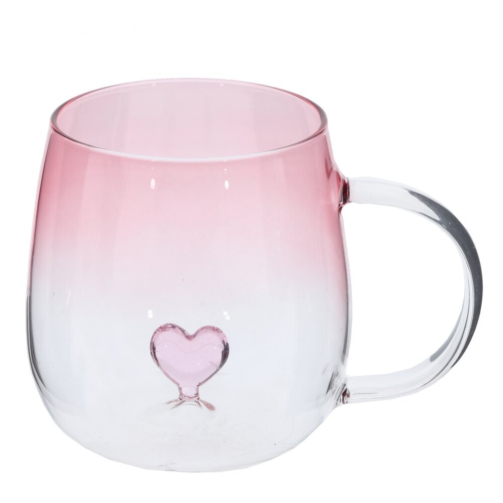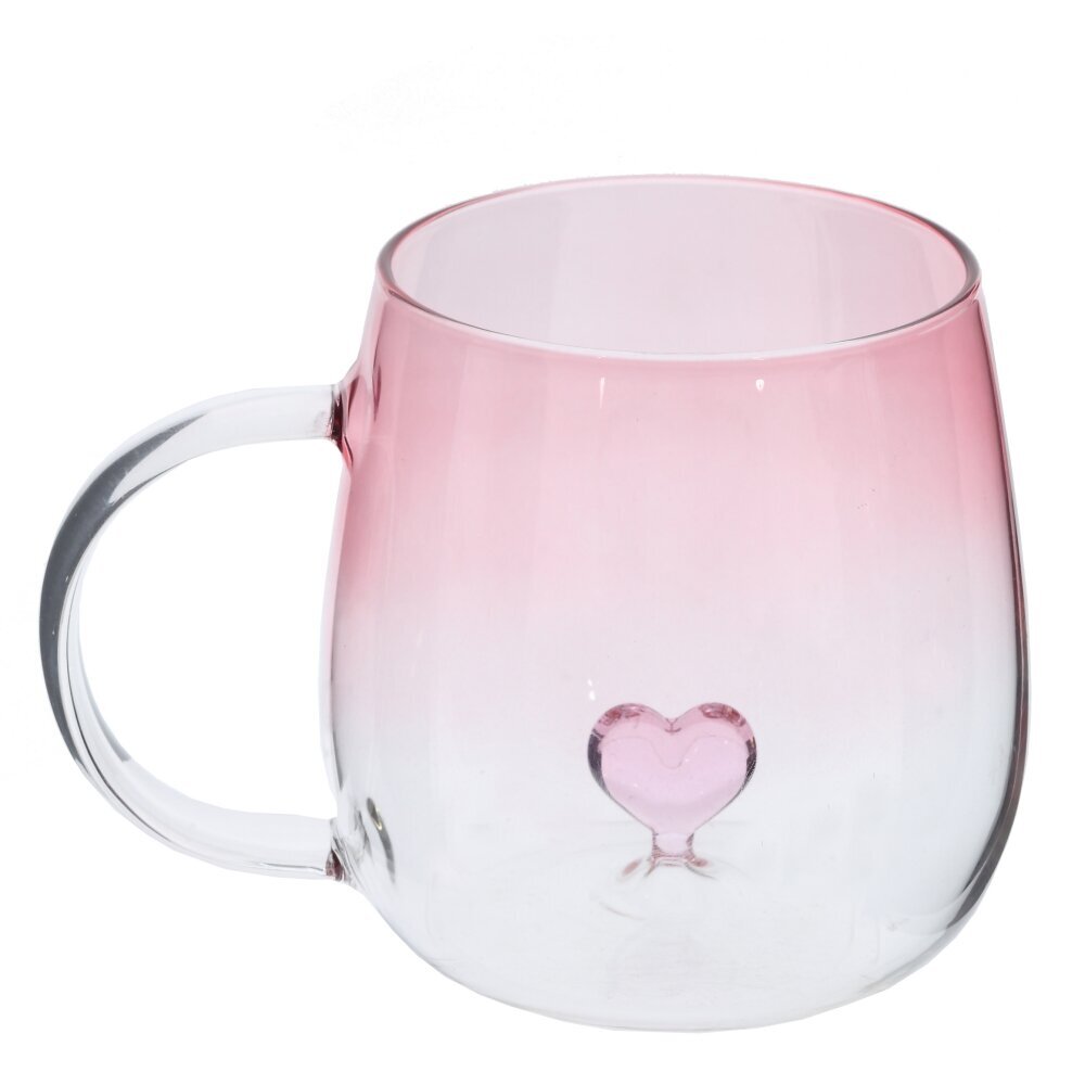 Стильная стеклянная кружка объёмом 380 мл с нежным розовым градиентом от края к дну. Внутри, у основания, выполнен милый декоративный элемент в форме сердечка, который красиво преломляет свет и делает каждое чаепитие особенным. Скруглённые стенки и гладкий тонкий ободок приятны к губам, прозрачная ручка удобно лежит в руке. Устойчивое дно помогает избежать опрокидывания. Идеальна для чая, кофе, какао или напитков со льдом, создаёт уют и романтическое настроение. Отличный подарок на любой повод. Рекомендуется бережная ручная мойка без абразивов для сохранения блеска и цвета.