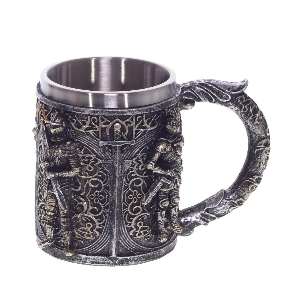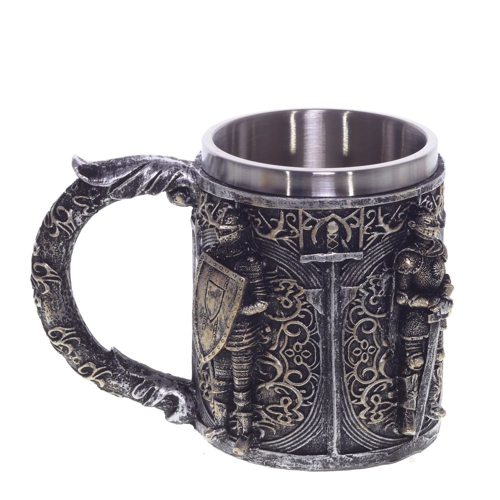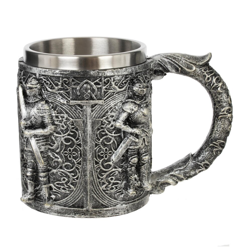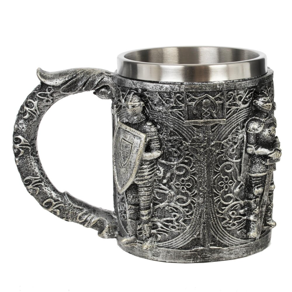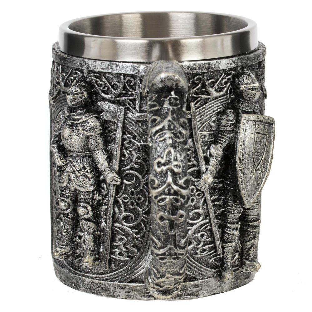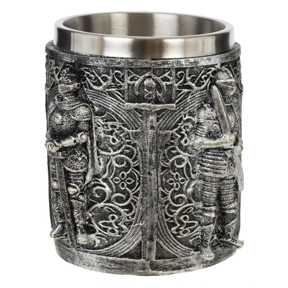 Пивная кружка из нержавеющей стали и акриловой смолы, имеет цилиндрическую форму. Прочная, простая в использовании, объем: 450 мл. Внешняя отделка имитирует резьбу по металлу, поэтому выглядит дорого. Станет отличным подарком любителям пива.