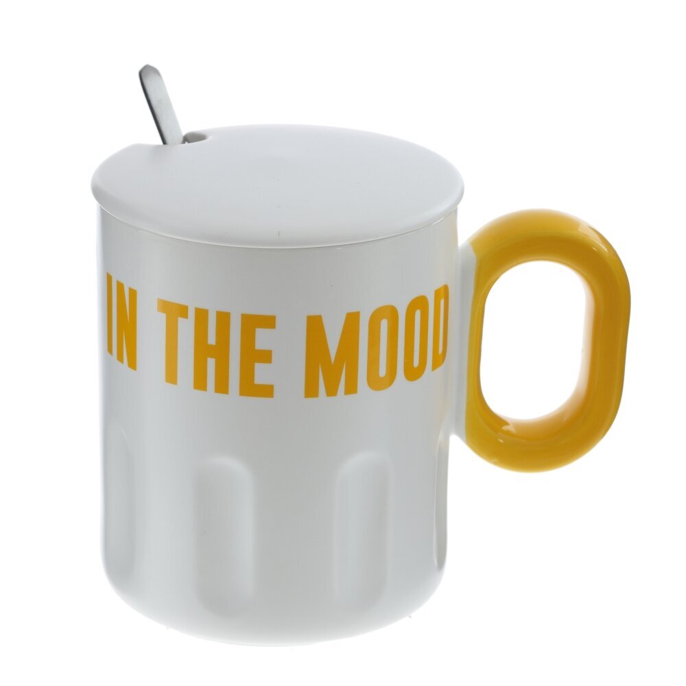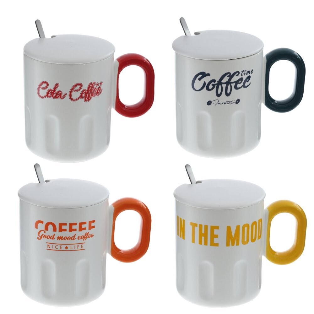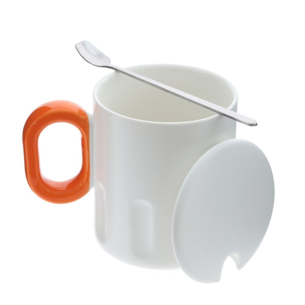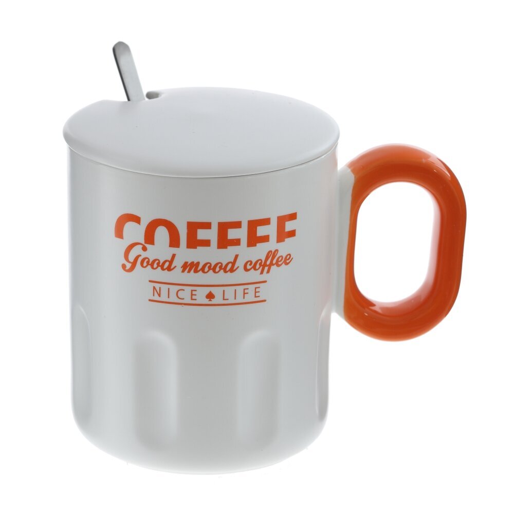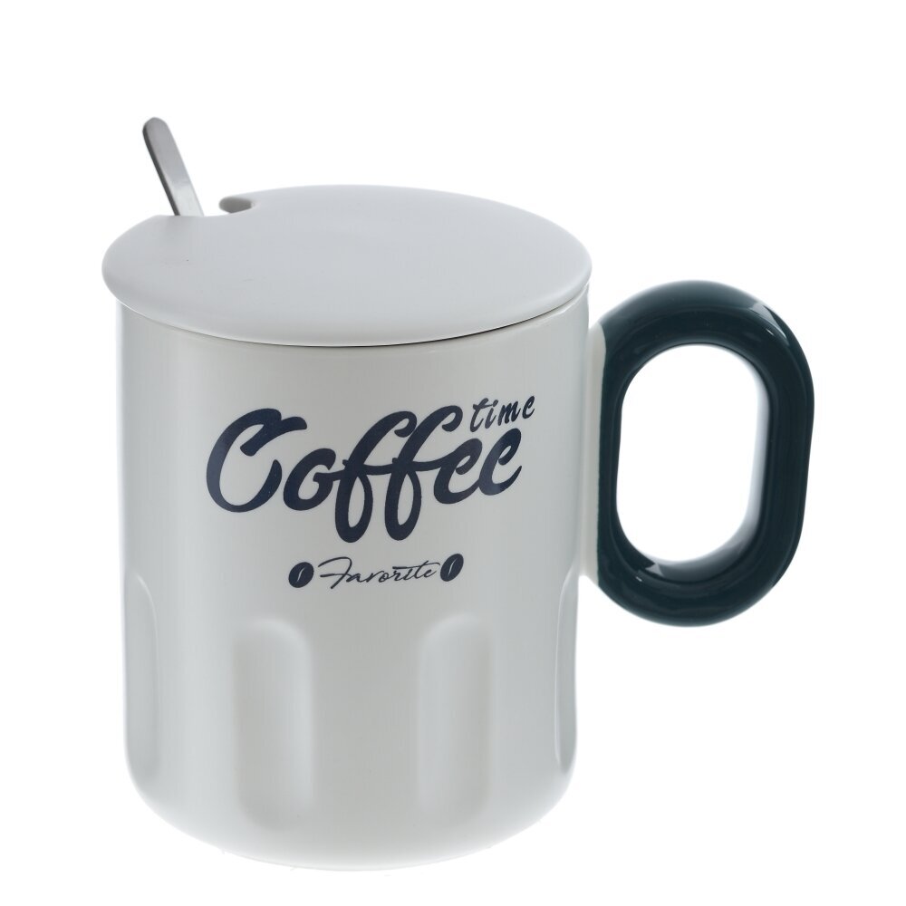 Стильная кружка с крышкой и ложкой объемом 350 мл для ежедневных горячих и холодных напитков. Изготовлена из гладкого фарфора, ложка — из металла. Белая основа с яркой глянцевой ручкой и надписью Coffee time Favorite создает уютный, современный акцент. Плотная крышка с выемкой под ложку сохраняет тепло и аромат, защищает от пыли. Рельефные вертикальные выемки у основания улучшают хват, утолщенное дно обеспечивает устойчивость. Эргономичная большая ручка удобна для держания. Идеальна для кофе, чая, какао дома или в офисе, станет приятным и практичным подарком. Представлено в четырех вариантах.