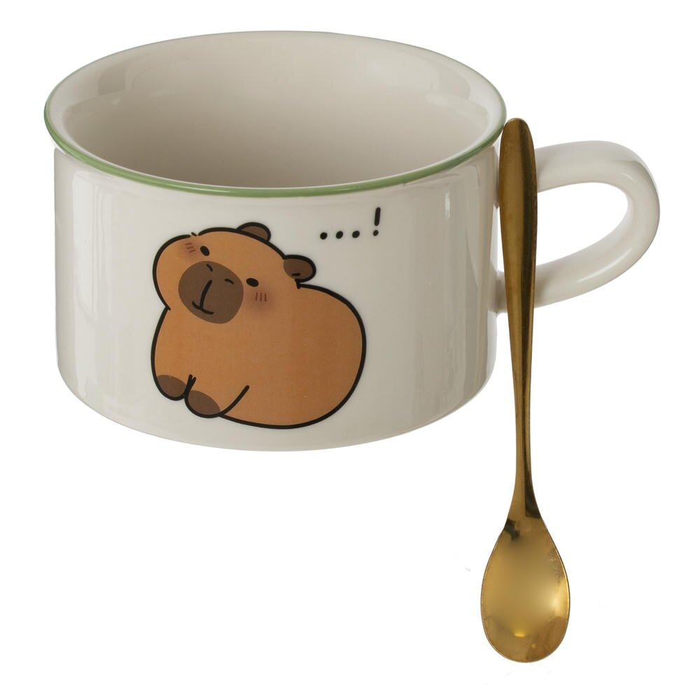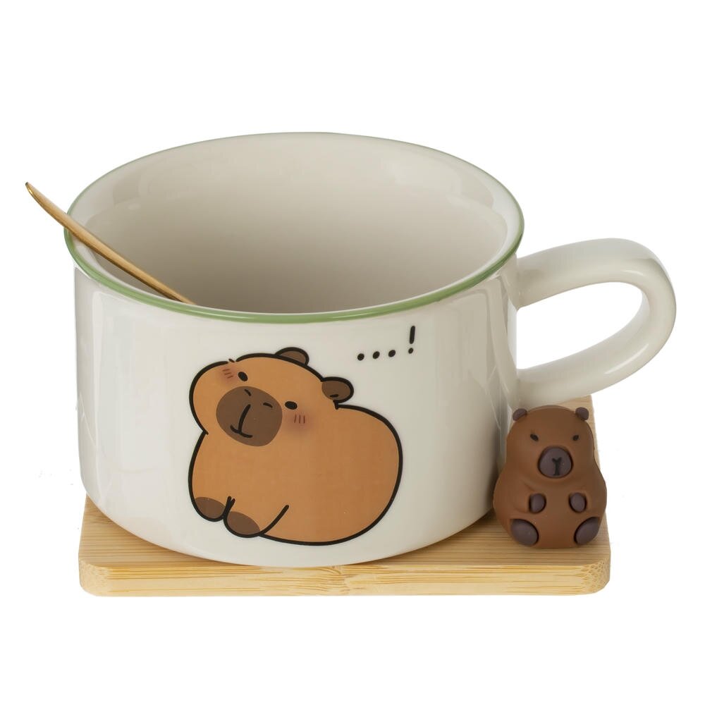 Очаровательная кружка с ложкой на подставке — стильный и практичный набор для уютных чаепитий дома и в офисе. Объём 280 мл оптимален для чая, кофе, какао или десертных напитков. Кружка выполнена из качественного фарфора с гладкой глянцевой поверхностью и украшена забавным рисунком капибары, который поднимает настроение с первого взгляда. Деревянная подставка защищает стол от горячего дна и служит аккуратной подставкой для мини?фигурки и ложки. Металлическая ложечка удобно ложится в руку и подходит для размешивания сахара, сиропов и добавок. Декоративные элементы изготовлены из прочных полимерных материалов, устойчивых к выцветанию. Такой набор станет милым подарком другу, коллеге или ребёнку, а также оригинальным акцентом в интерьере кухни или рабочего стола.
