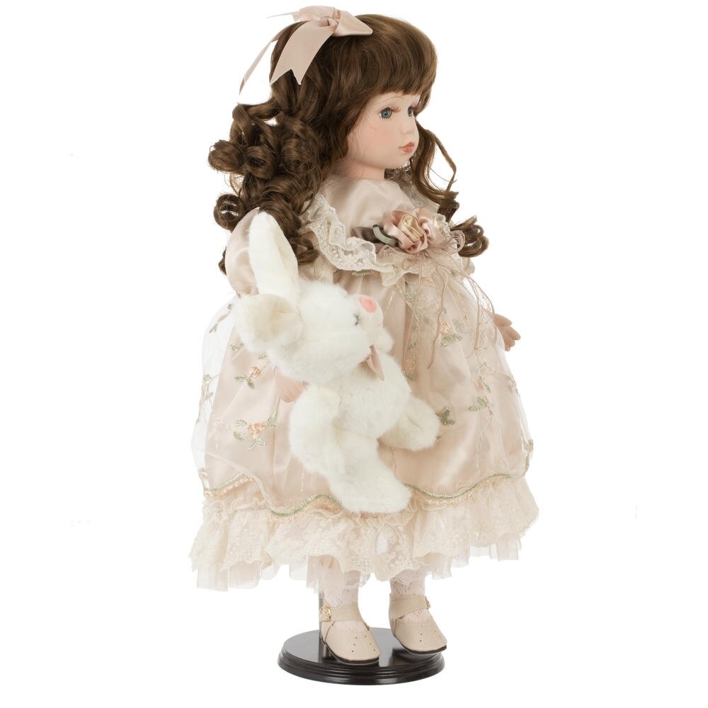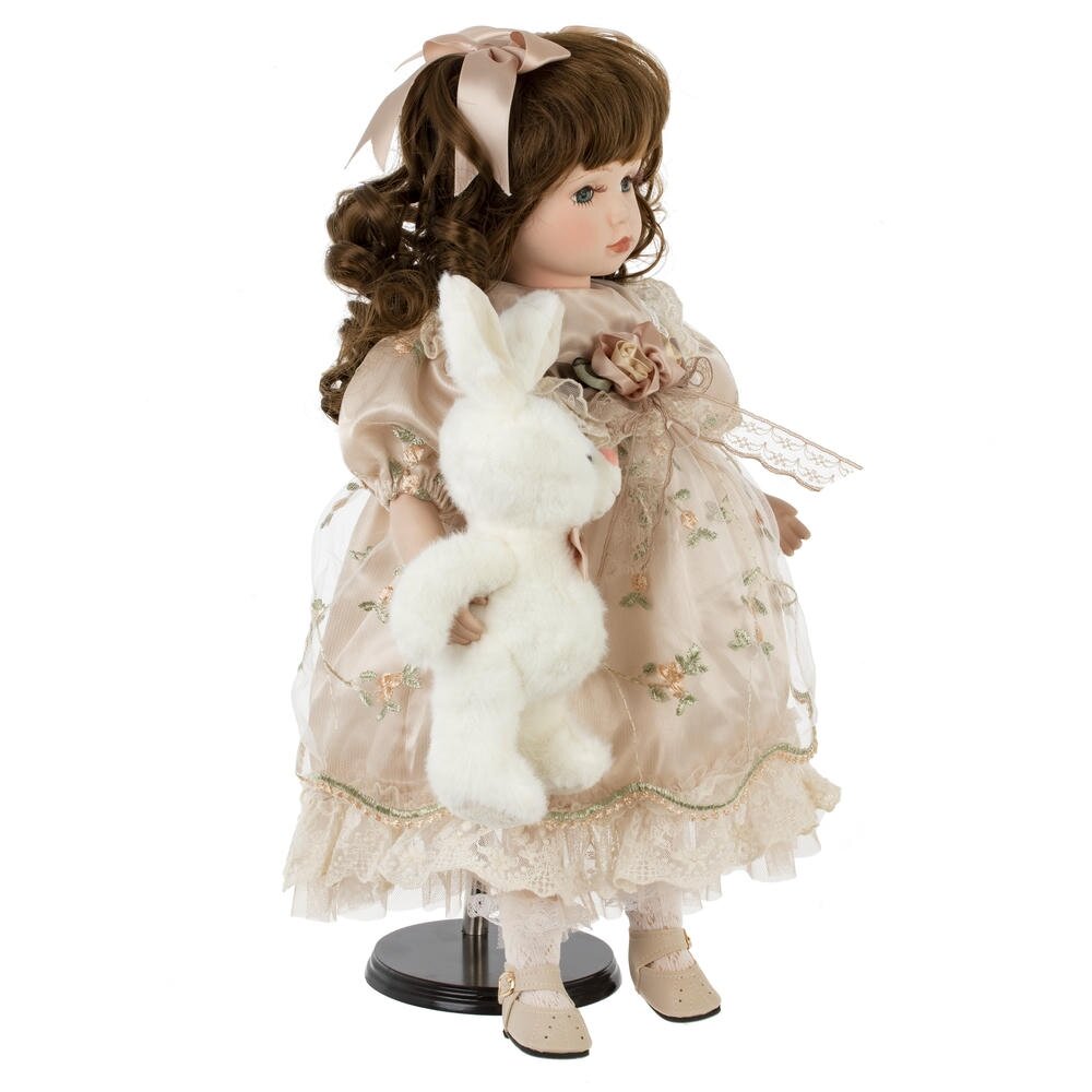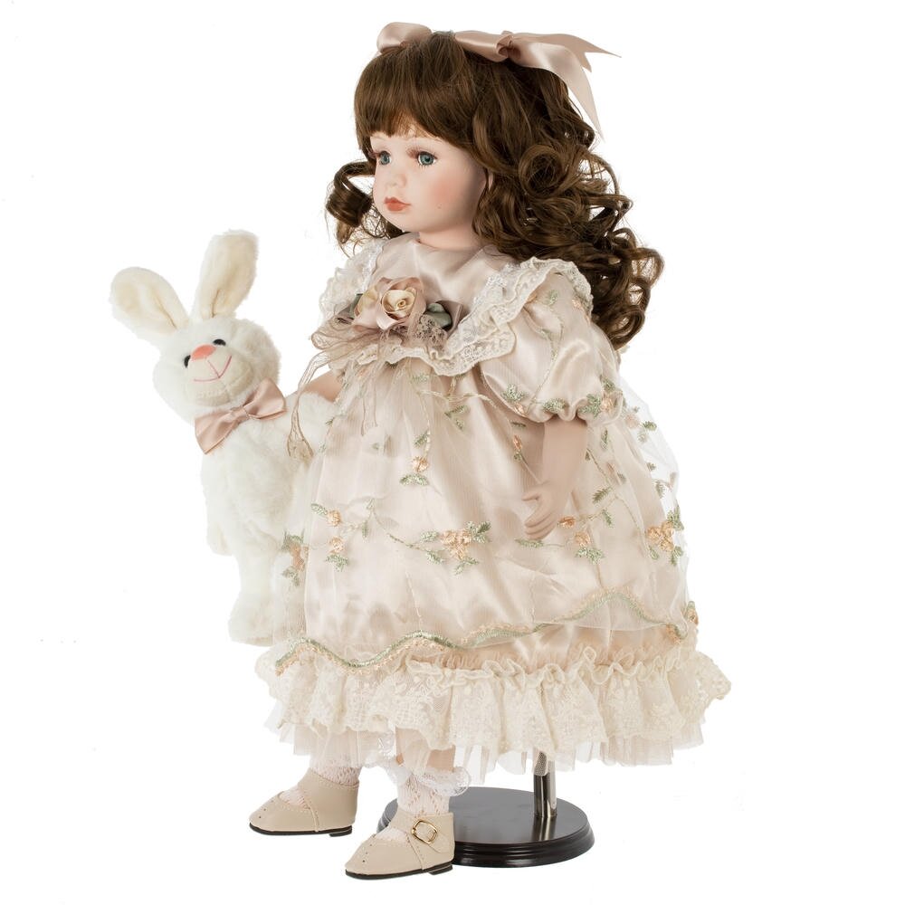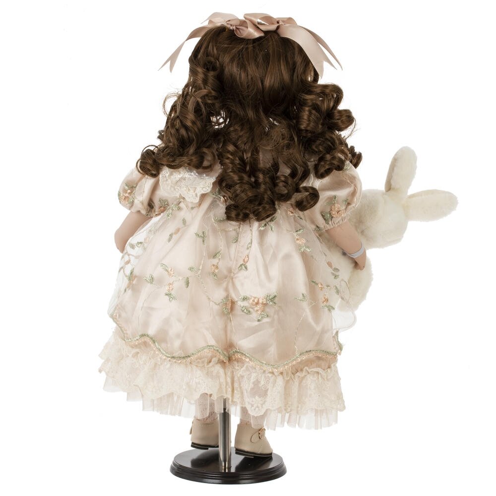 Кукла, созданная с любовью и вниманием к деталям. Она очаровывает своим нежным взглядом, милой улыбкой и трогательной простотой. Платье, украшенное кружевом, подчёркивает женственность и изящество куклы. А мягкий плюшевый медвежонок, которого она бережно держит в руке, добавляет образу трогательности и уюта. Деревянная подставка, на которой стоит кукла, добавляет ей устойчивости и завершает образ. Кукла станет чудесным подарком для девочки, а также для коллекционеров кукол. Она украсит любой интерьер и подарит своим обладателям тепло и душевную радость.