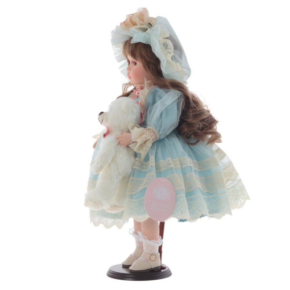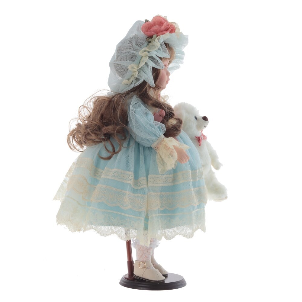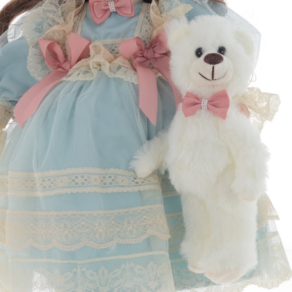 Кукла, созданная с любовью и вниманием к деталям. Она очаровывает своим нежным взглядом, милой улыбкой и трогательной простотой. Платье, украшенное кружевом, подчёркивает женственность и изящество куклы. А мягкий плюшевый медвежонок, которого она бережно держит в руке, добавляет образу трогательности и уюта. Деревянная подставка, на которой стоит кукла, добавляет ей устойчивости и завершает образ. Кукла станет чудесным подарком для девочки, а также для коллекционеров кукол. Она украсит любой интерьер и подарит своим обладателям тепло и душевную радость.