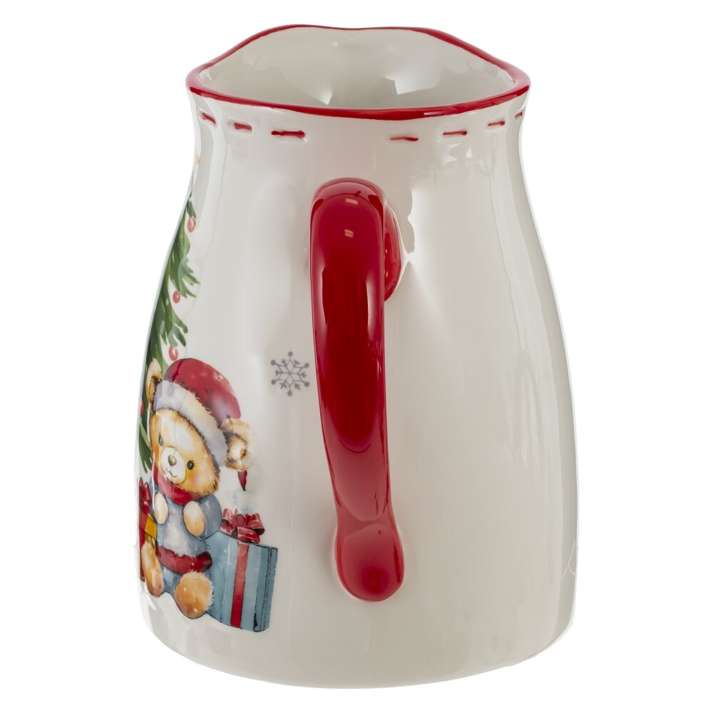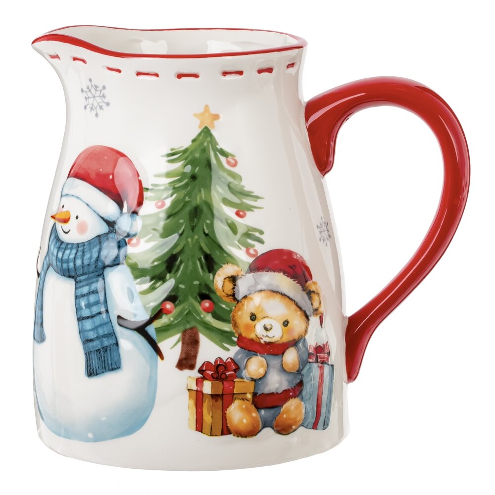 Кувшин "Веселый Новый год" объемом 1400 мл станет незаменимым атрибутом праздничного стола. Изготовленный из керамики, он украшен рельефным изображением милого снеговика и плюшевого мишки с подарками на фоне новогодней елочки, что придаёт ему особое очарование. Удобная красная ручка обеспечивает комфортное использование, а сертификат качества гарантирует безопасность для контакта с продуктами. Этот стильный кувшин в красивой упаковке станет отличным подарком для родных и друзей, наполняя их дома теплом и радостью новогодних праздников. Создайте уютную атмосферу с этим замечательным предметом!