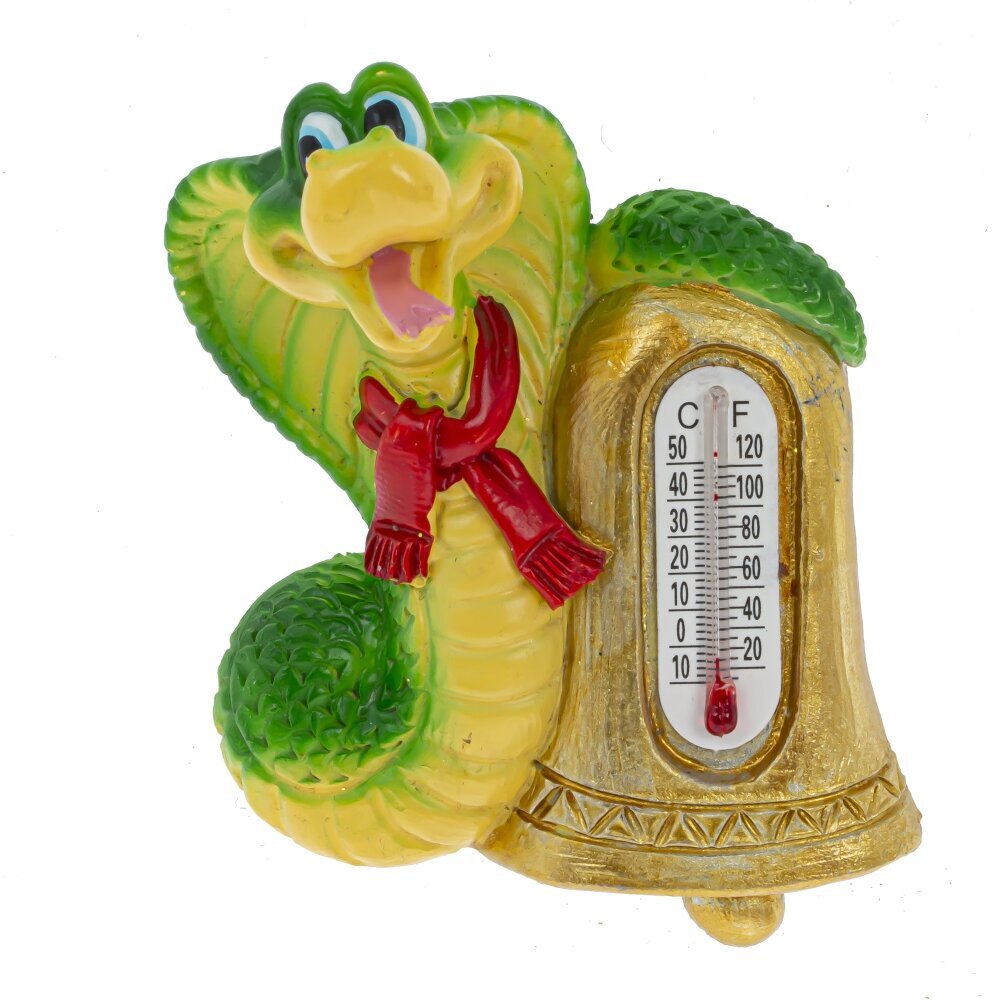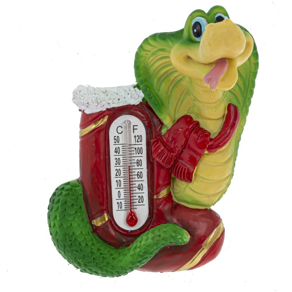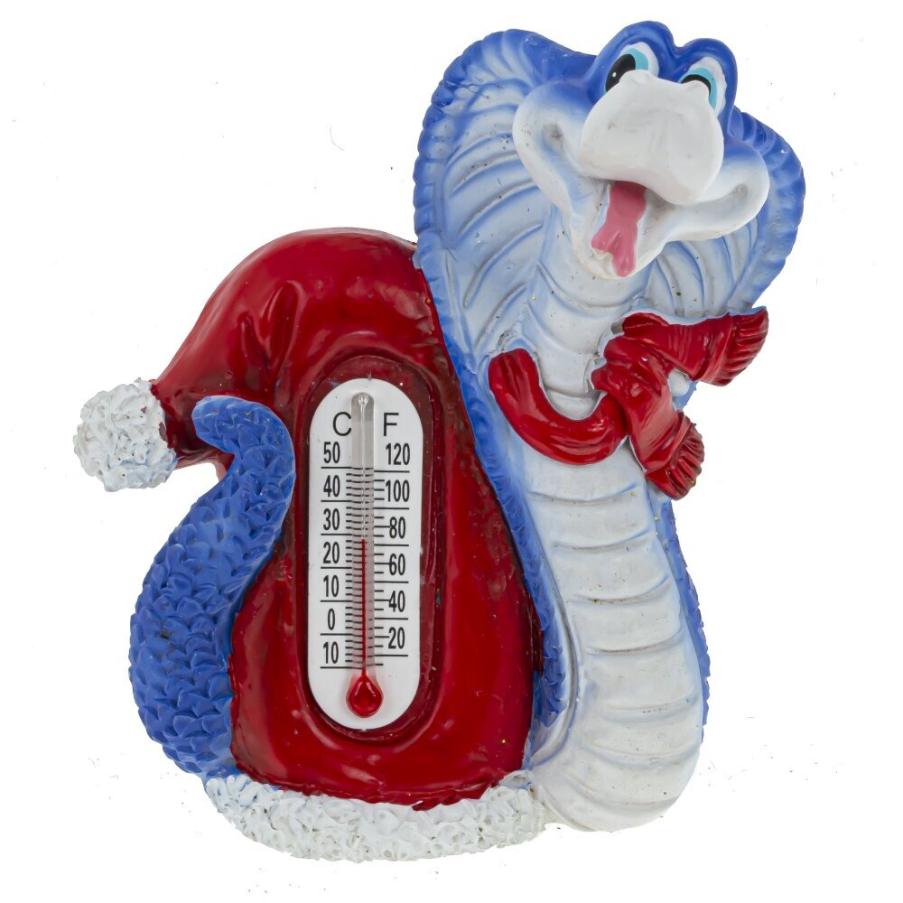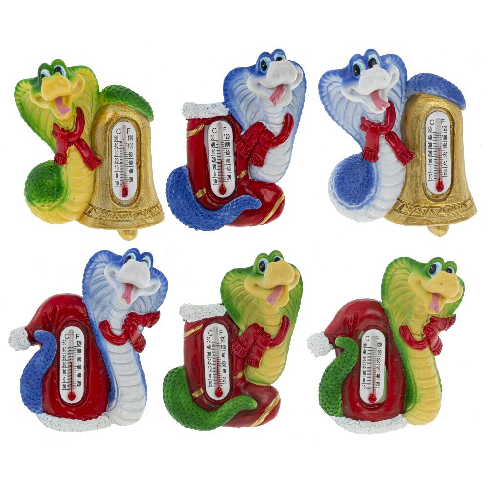 Магнит с термометром "Змея" — это оригинальный новогодний сувенир, символизирующий наступающий год. Этот магнит, представляющий собой веселую змейку-кобру, которая обвивает термометр. Змейка выполнена из качественного полистоуна, на обратной стороне приклеен круглый магнит. Этот практичный аксессуар доступен в шести вариантах и двух цветах. Он станет отличным подарком для друзей и родных в новогодние дни.