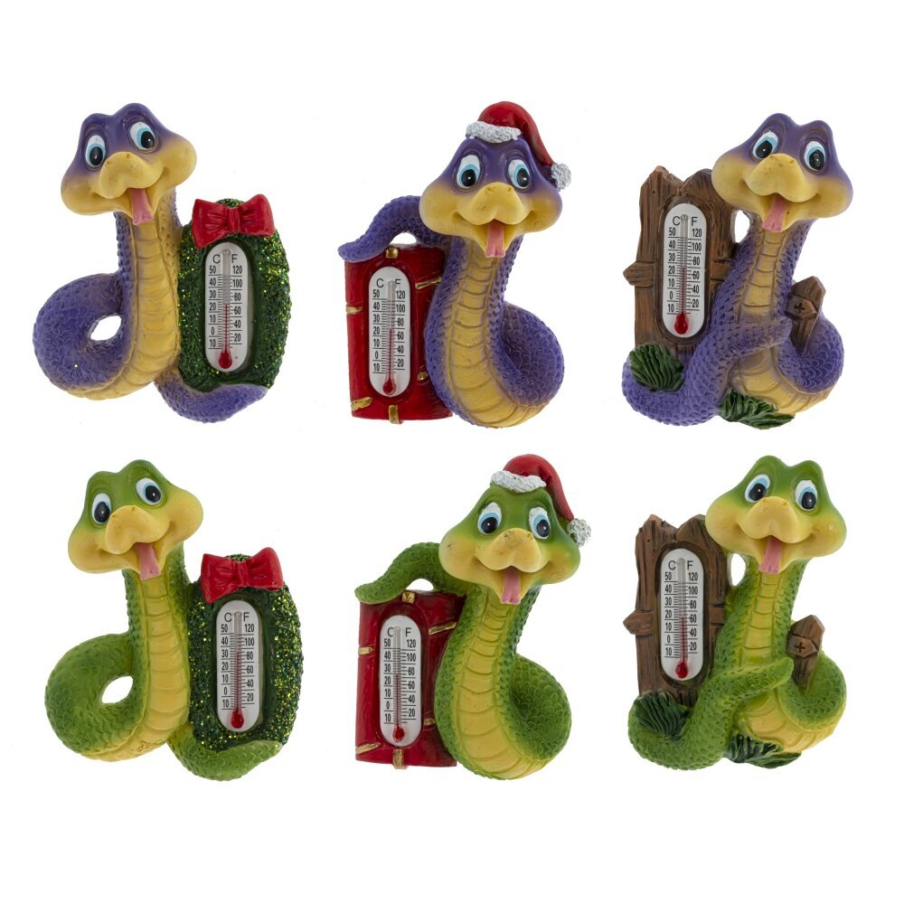 Магнит с термометром "Змея" — это оригинальный новогодний сувенир, символизирующий наступающий год. Этот магнит, представляющий собой веселую змейку, которая обвивает термометр. Змейка выполнена из качественного полистоуна, на обратной стороне приклеен круглый магнит. Этот практичный аксессуар доступен в шести вариантах и двух цветах. Он станет отличным подарком для друзей и родных в новогодние дни.