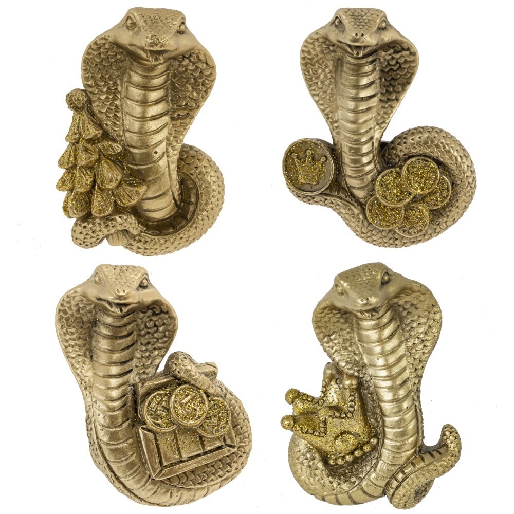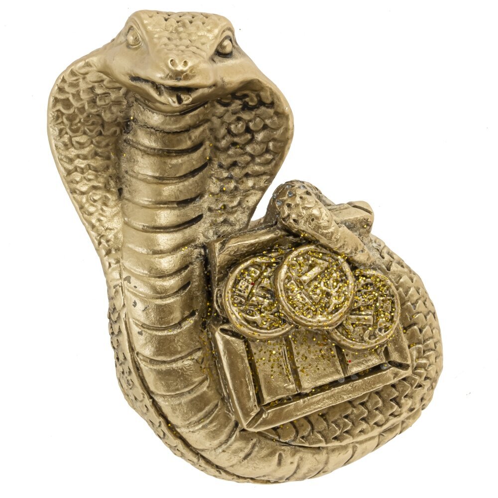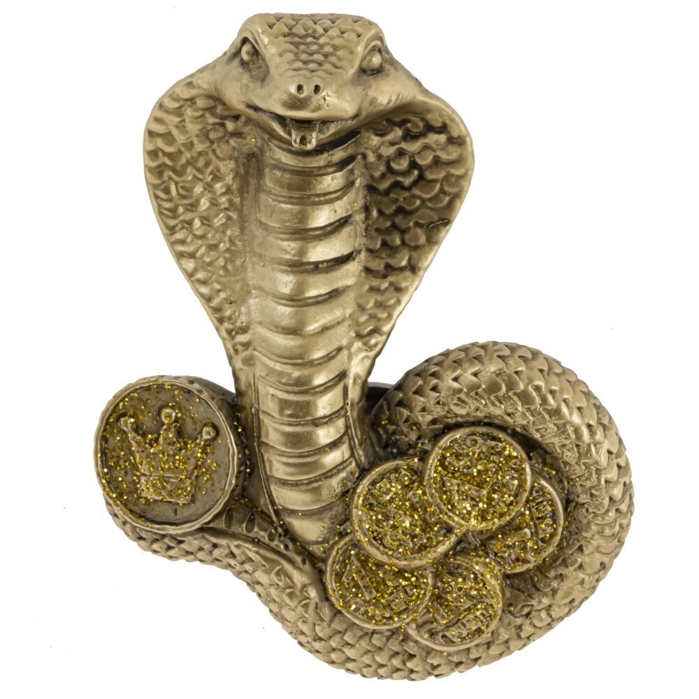 Этот новогодний магнит из полистоуна обладает особым очарованием и символизмом. Золотистая змея-кобра несет в себе таинственность и мудрость. Она обвивает монеты, сундук с монетами или елочку, в зависимости от вида. Этот сувенир станет прекрасным дополнением к праздничной обстановке. Представлен в трех вариантах.