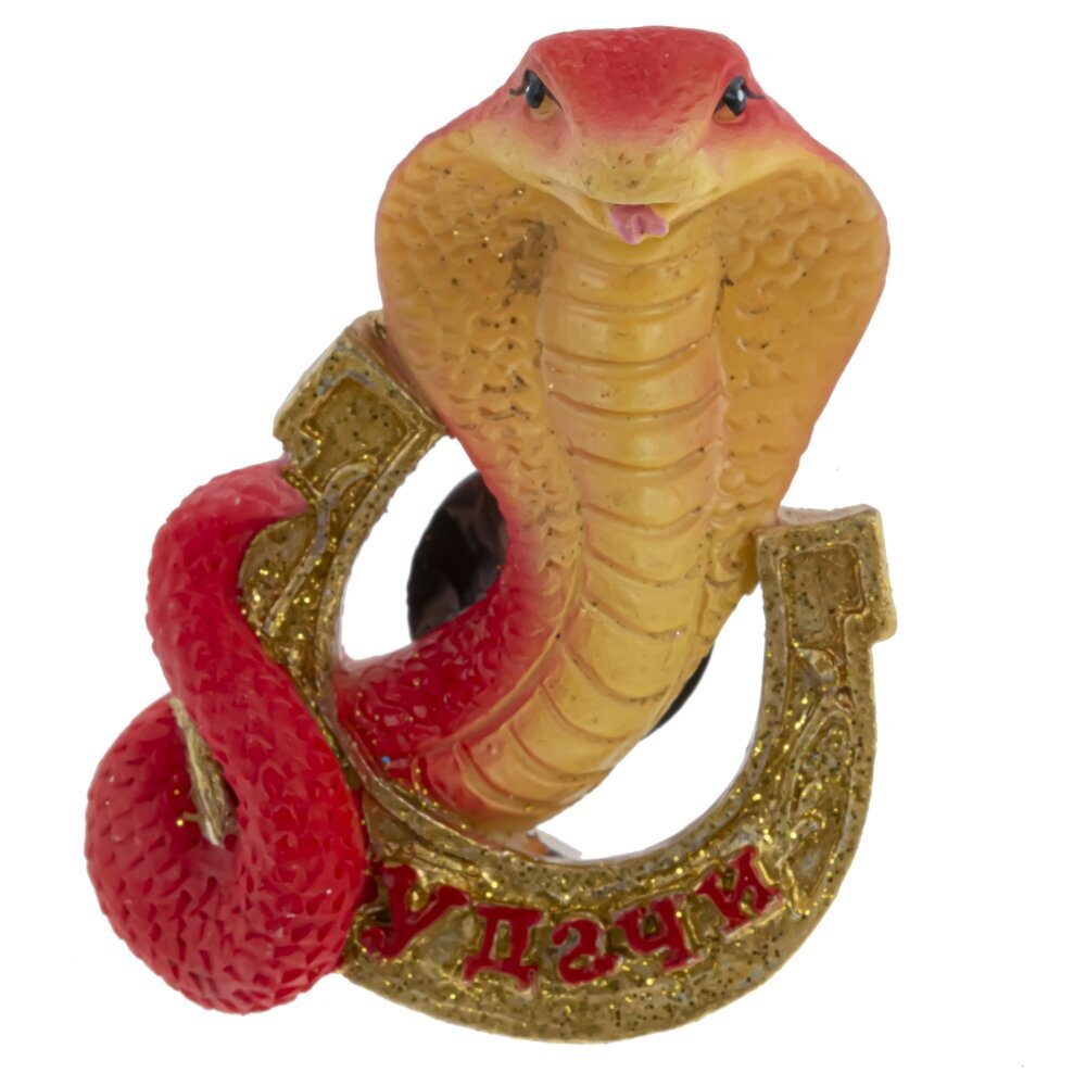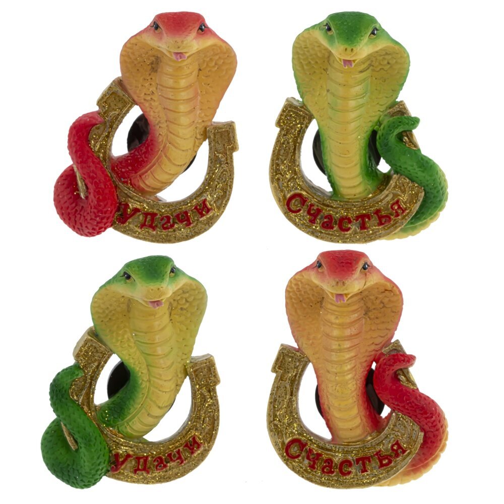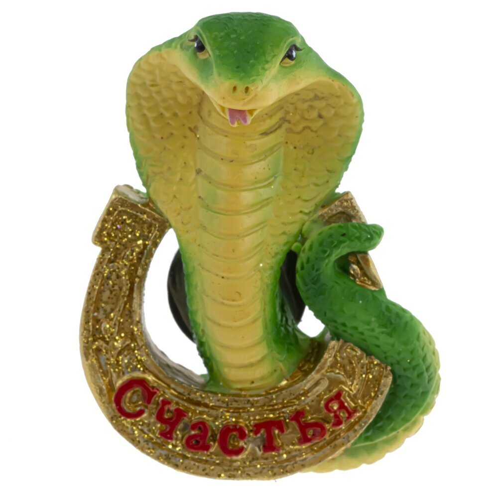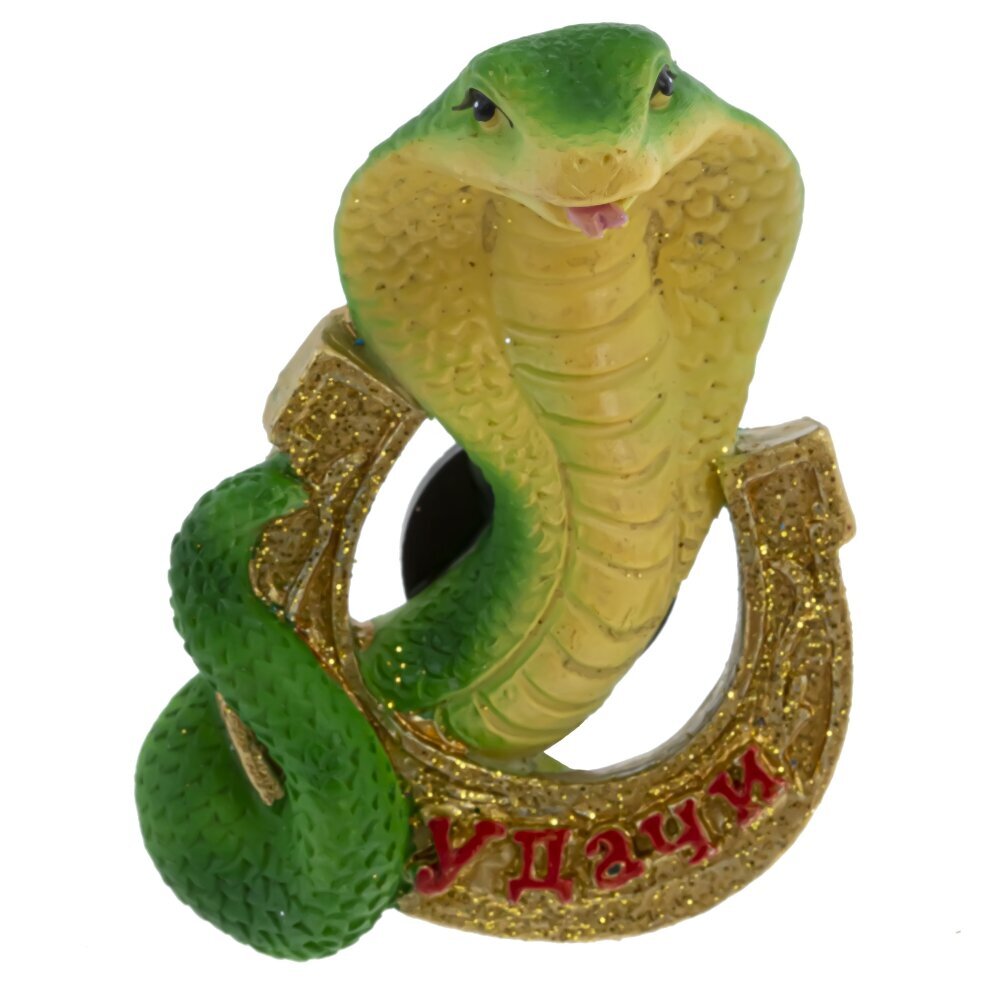 Магнит“Змея” привлекает внимание своим очаровательным дизайном. Символ 2025 года - змея-кобра обвивает золотую поддкову, что делает ее не просто украшением, а настоящим талисманом на удачу. Магнит может украшать холодильник, доску с фотографиями или любой другой металлический элемент вашего интерьера. Представлен в четырех вариантах и двух расцветках: зеленая и оранжевая.