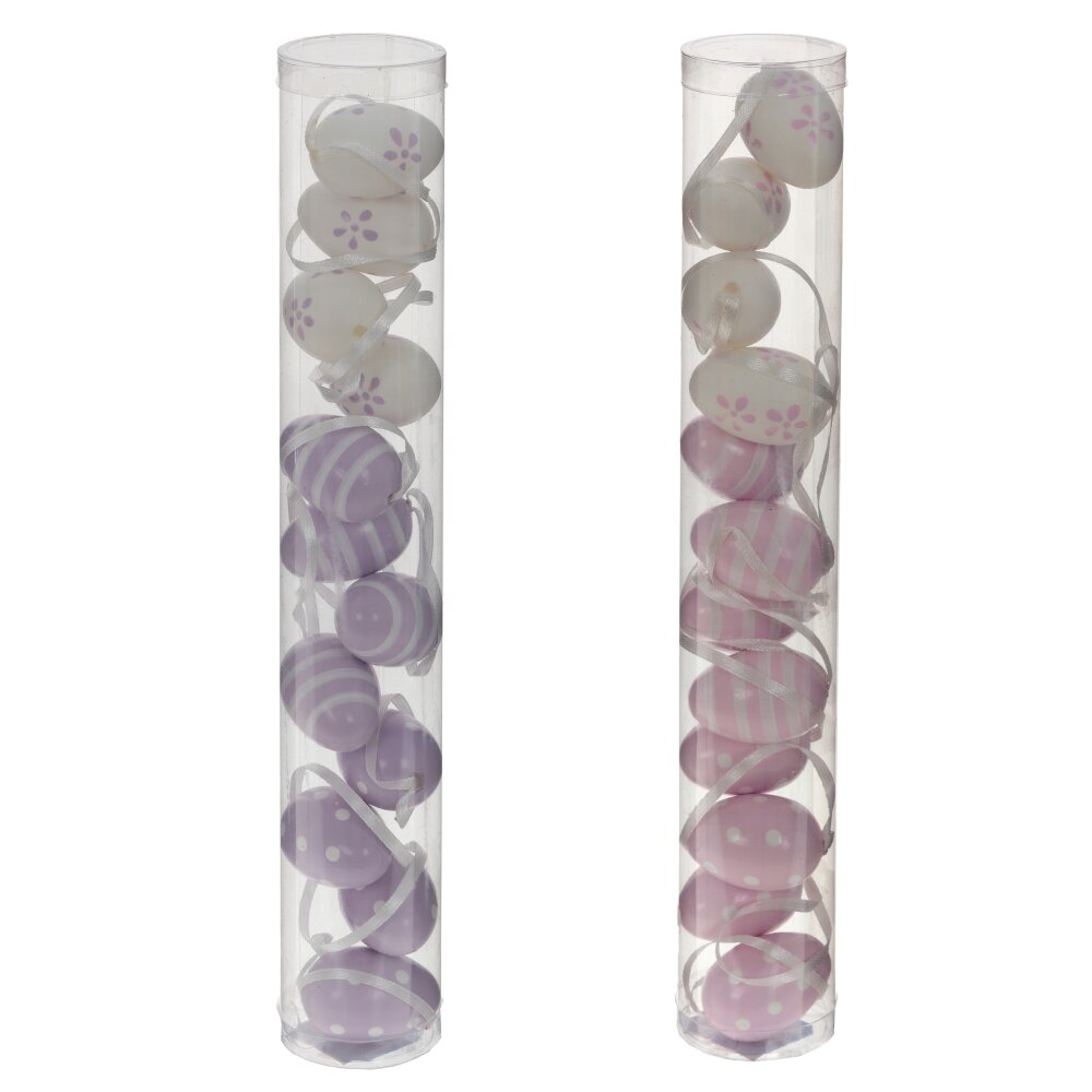 Набор из 12-ти декоративных подвесных яиц является прекрасным выбором для оформления пасхального дерева или композиции. Этот набор станет отличным подарком для друзей или близких. Он создаст атмосферу весеннего праздника и радости, и добавит настроение праздника в любое помещение. Представлено в двух вариантах.