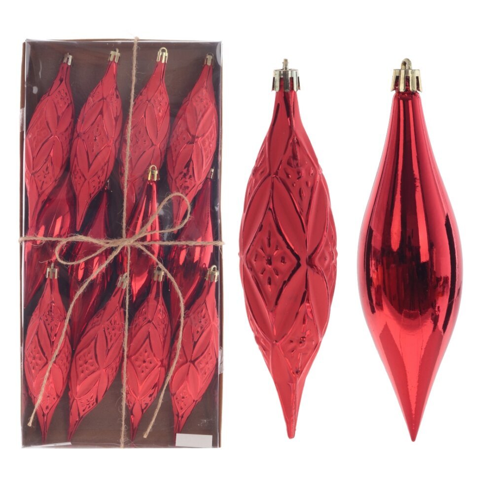 Украшение новогоднее "Капля" - это изысканный набор из 12 штук, который станет ярким акцентом на вашей елке. В наборе представлены изящные красные капли высотой 16 см, из которых четыре гладкие и зеркальные, а восемь имеют матовую поверхность с ромбовидным орнаментом. Эти утонченные декорации отлично сочетаются между собой, создавая элегантный образ для вашей елки. Роскошные красные капли придадут праздничного настроения и добавят изысканности вашему интерьеру.