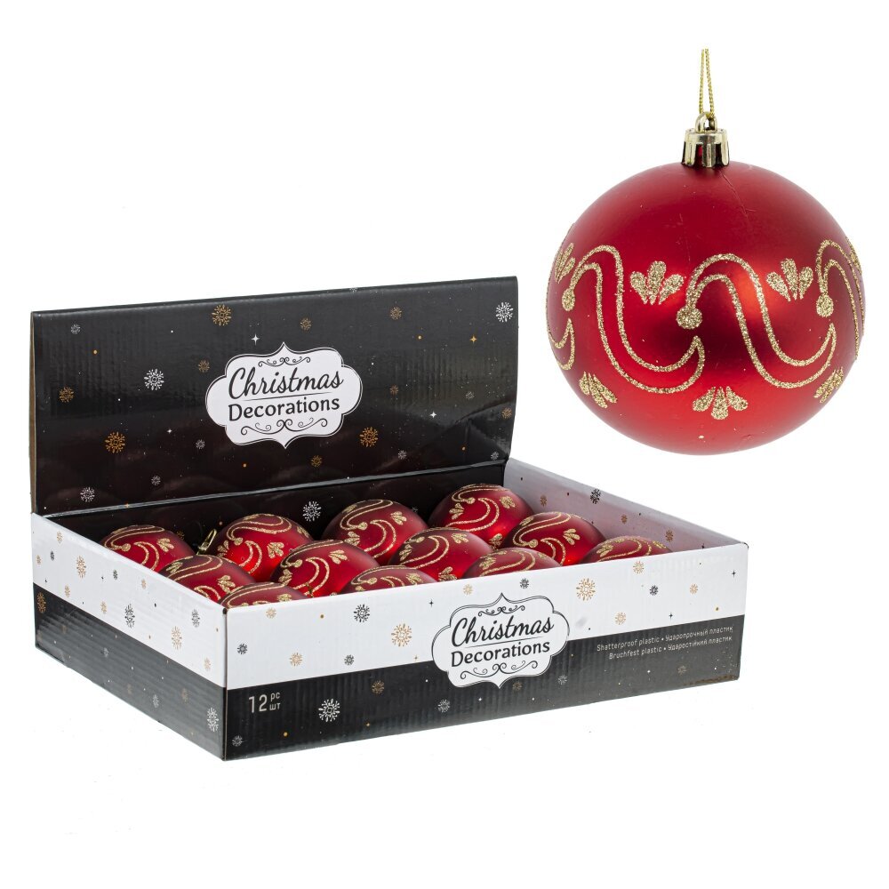 Набор из 12-ти шаров для елки в шоу-боксе. Эти новогодние шары из пластика, непременно, порадуют вас своим изяществом и прекрасно дополнят праздничный наряд лесной красавицы.