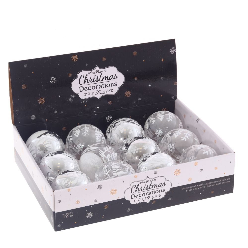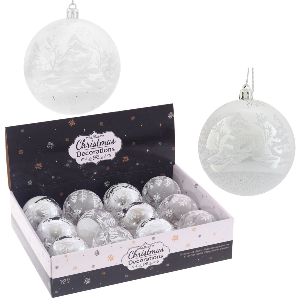 Набор шаров для елки в шоу-боксе. Эти новогодние шары с нежными узорами непременно порадуют вас своим изяществом и прекрасно дополнят праздничный наряд лесной красавицы.