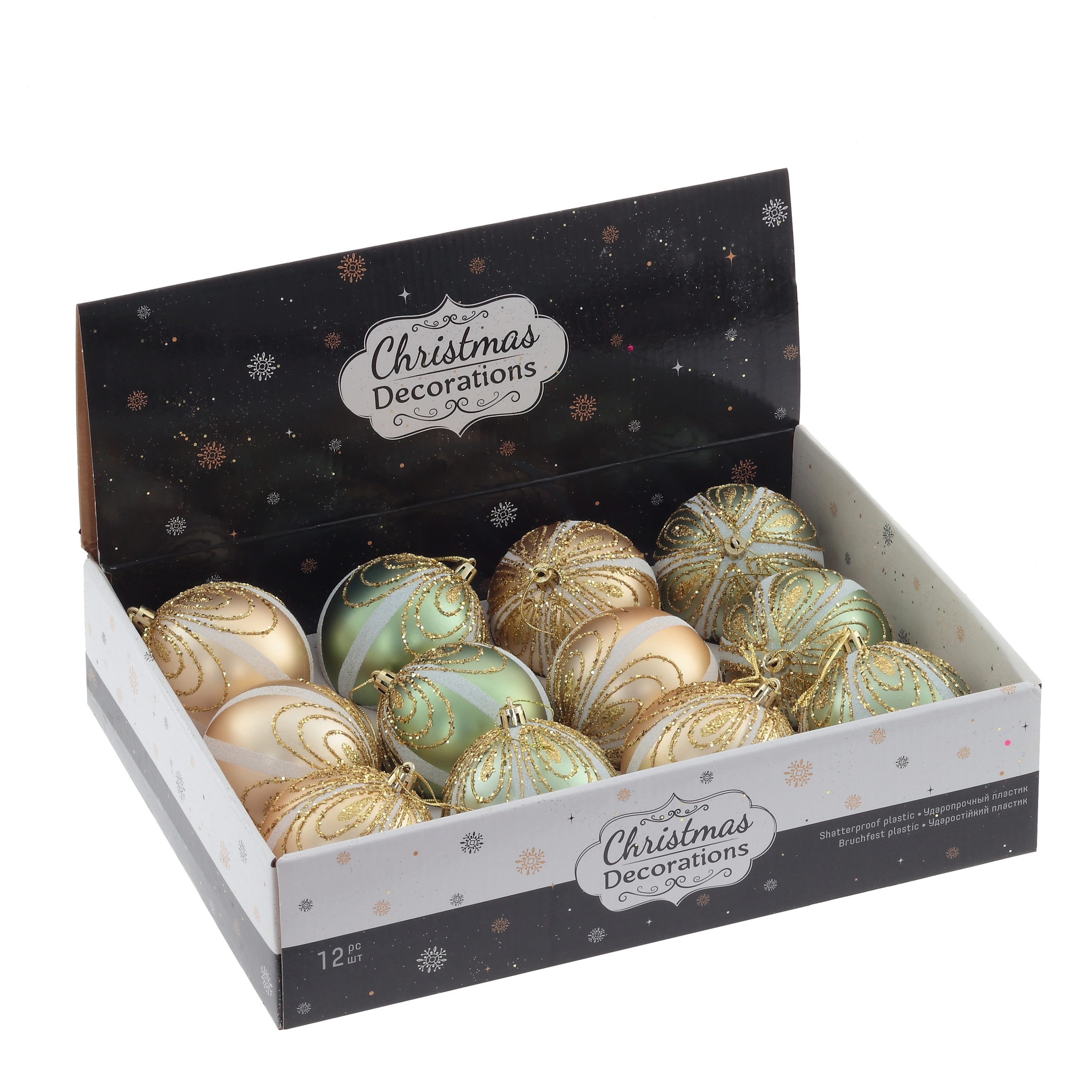 Набор шаров для елки в шоу-боксе. Эти новогодние шары с нежными узорами непременно порадуют вас своим изяществом и прекрасно дополнят праздничный наряд лесной красавицы.