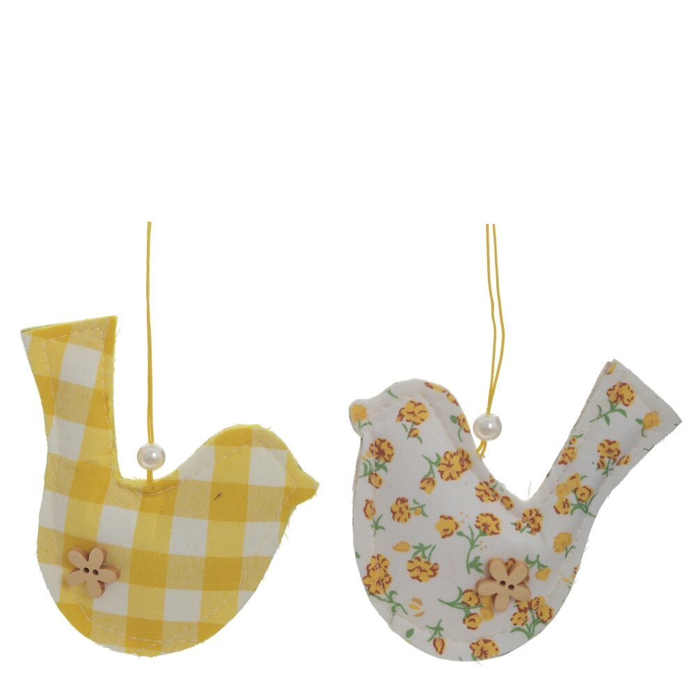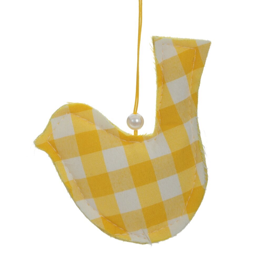 Декоративное подвесное изделие «Курица» — нежное пасхальное украшение для дома. Изделие выполнено из текстильных материалов и представлено в двух вариантах: в жёлтую клетку и с белым фоном и жёлтыми цветочками. Лёгкие и приятные на ощупь курочки оснащены петелькой для подвешивания, их удобно разместить на пасхальном дереве, двери, стене, оконной раме или в детской. Создают уютную весеннюю атмосферу, подойдут для оформления праздника, фотозоны, композиций в корзинках и подарочных наборов.