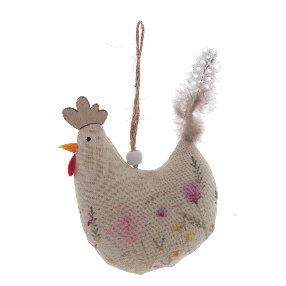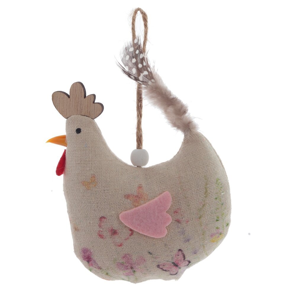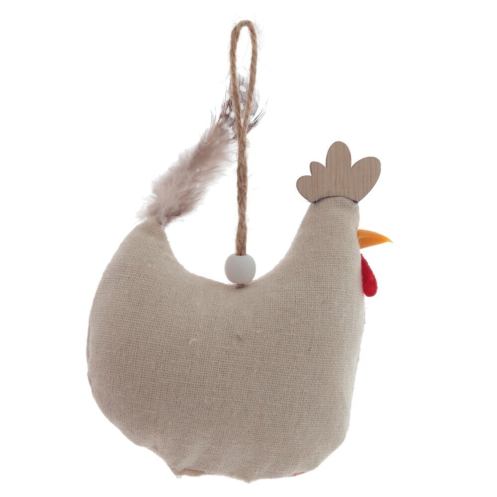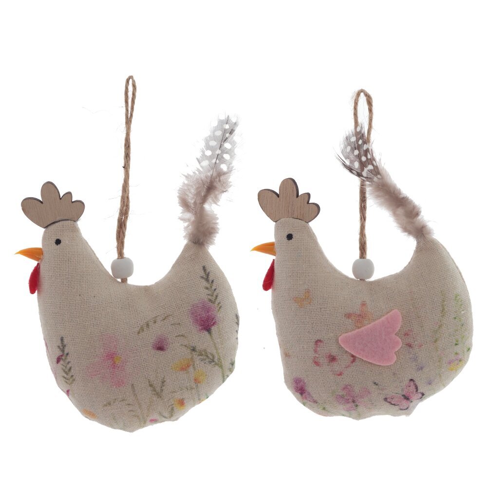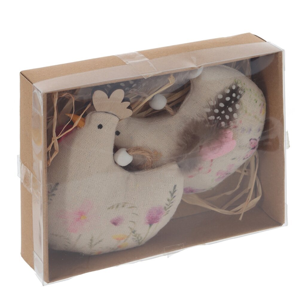Набор из 2-х декоративных подвесных изделий "Курочка" выполнен из текстильных материалов и станет прекрасным украшением для дома, сада или пасхальной композиции. Мягкие тканевые фигурки в форме курочек оформлены нежными цветочными узорами и дополнены декоративными элементами – деревянным гребешком, текстильным крылом и хвостиком из перьев, что придает им оригинальный и уютный вид. Размер каждой фигурки составляет 9?3?11,5 см, что делает их удобными для подвешивания на ветви деревьев, стену или праздничные композиции. Благодаря своей натуральной цветовой гамме и приятной текстуре, такие подвески создают теплую, домашнюю атмосферу, идеально дополняя интерьер в стиле кантри, Прованс или эко. Такой набор станет отличным подарком для любителей уютных и природных декоративных элементов, а также добавит праздничного настроения на Пасху или другие семейные торжества.
