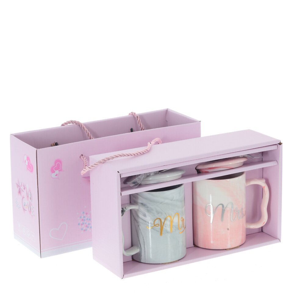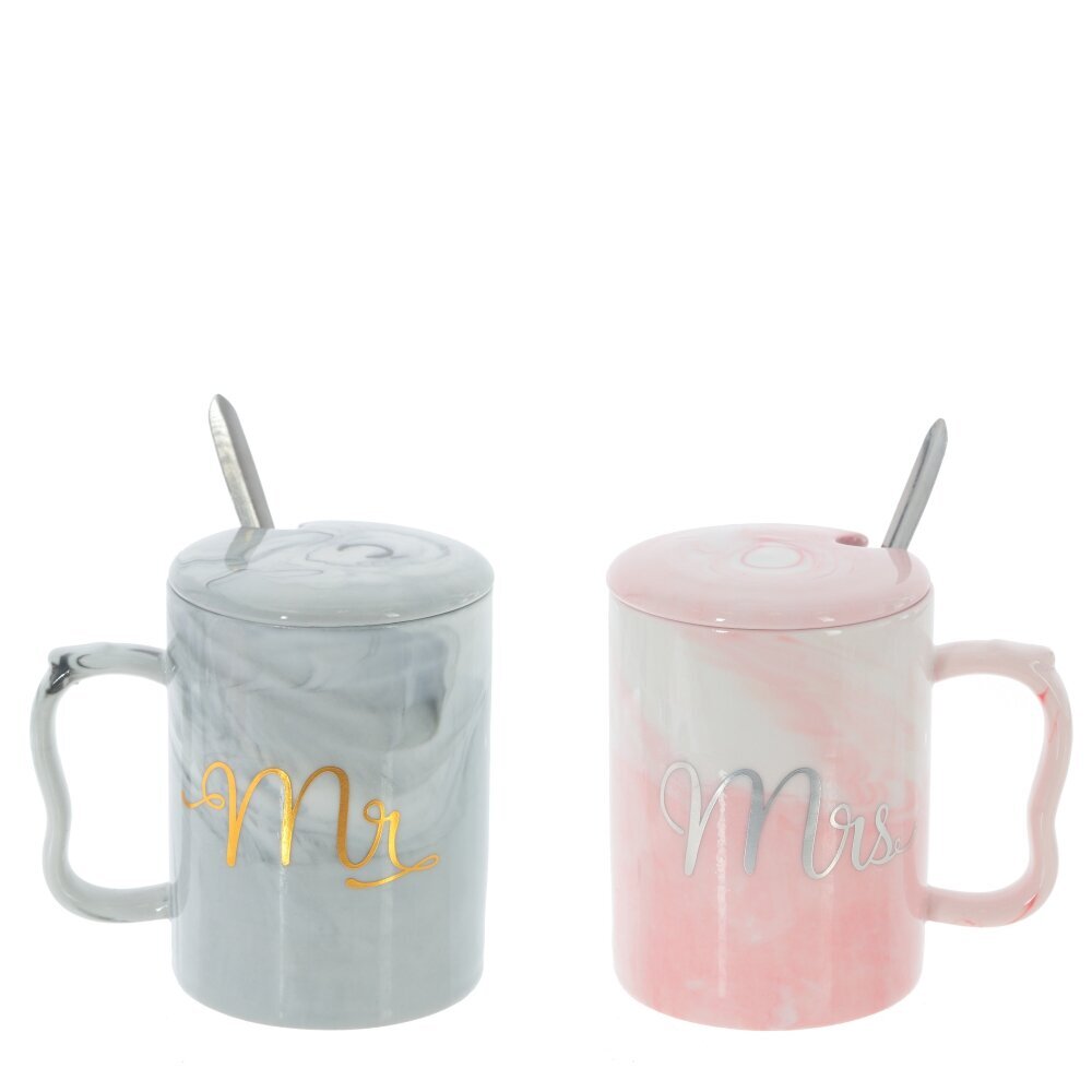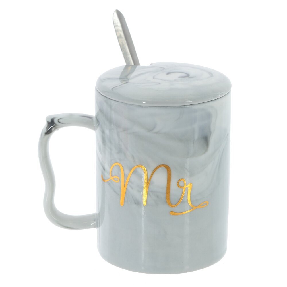 Элегантный набор из двух кружек с крышками и ложками станет прекрасным дополнением к вашему утреннему чаепитию или кофейной паузе. Кружки выполнены из фарфора и оформлены в стильном мраморном дизайне с изысканными надписями «Mr.» и «Mrs.», что делает их отличным подарком для пары. Объем каждой кружки – 400 мл, чего достаточно для комфортного употребления горячих напитков. В комплект входят крышки, которые помогают дольше сохранять тепло, а также ложки, изготовленные из коррозионностойкой стали, что обеспечивает долговечность использования. Эргономичные ручки удобно лежат в руке, создавая дополнительный комфорт. Такой стильный и функциональный набор отлично подойдет для семейного использования или романтического подарка.