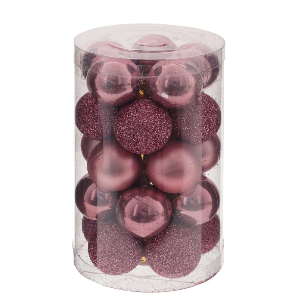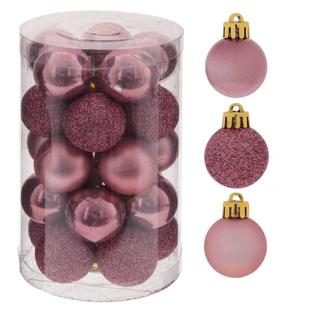 Набор из 25-ти елочных шаров, диаметром 3 см, выполнен в единой цветовой гамме. В составе набора - пластиковые шары разной фактуры - глянцевые, матовые и с глиттером. Прекрасно смотрятся в убранстве новогодней ели. Поставляются в прозрачной пластиковой упаковке.