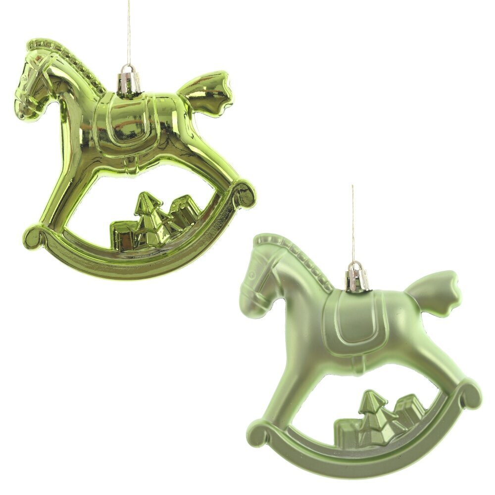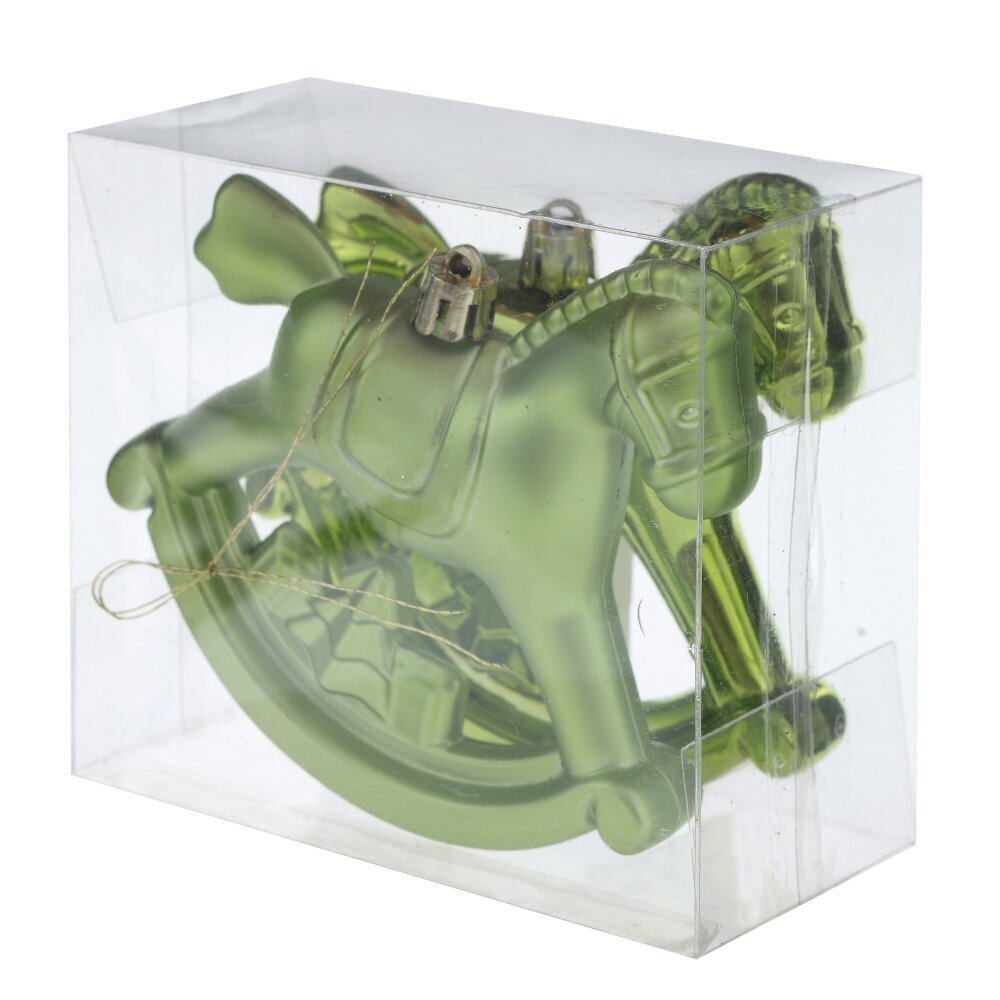 Набор из 2 новогодних украшений в виде "Лошадки". Идеально подходит для создания праздничной атмосферы в 2026 году, посвященного этой тематике. Изготовлено из прочных полимерных материалов, окрашено в яркий зеленый цвет. Отличный выбор для новогодних декораций, оформления интерьера и оригинальных подарков. Размеры изделия, как и другая информация, указаны в названии товара. Создайте волшебное настроение и добавьте очарования вашей новогодней вечеринки. Украшения станут прекрасным дополнением к праздничному декору, подчеркнут стиль и создадут атмосферу волшебства. Они могут использоваться для украшения елки, новогоднего стола или для создания тематических композиций.