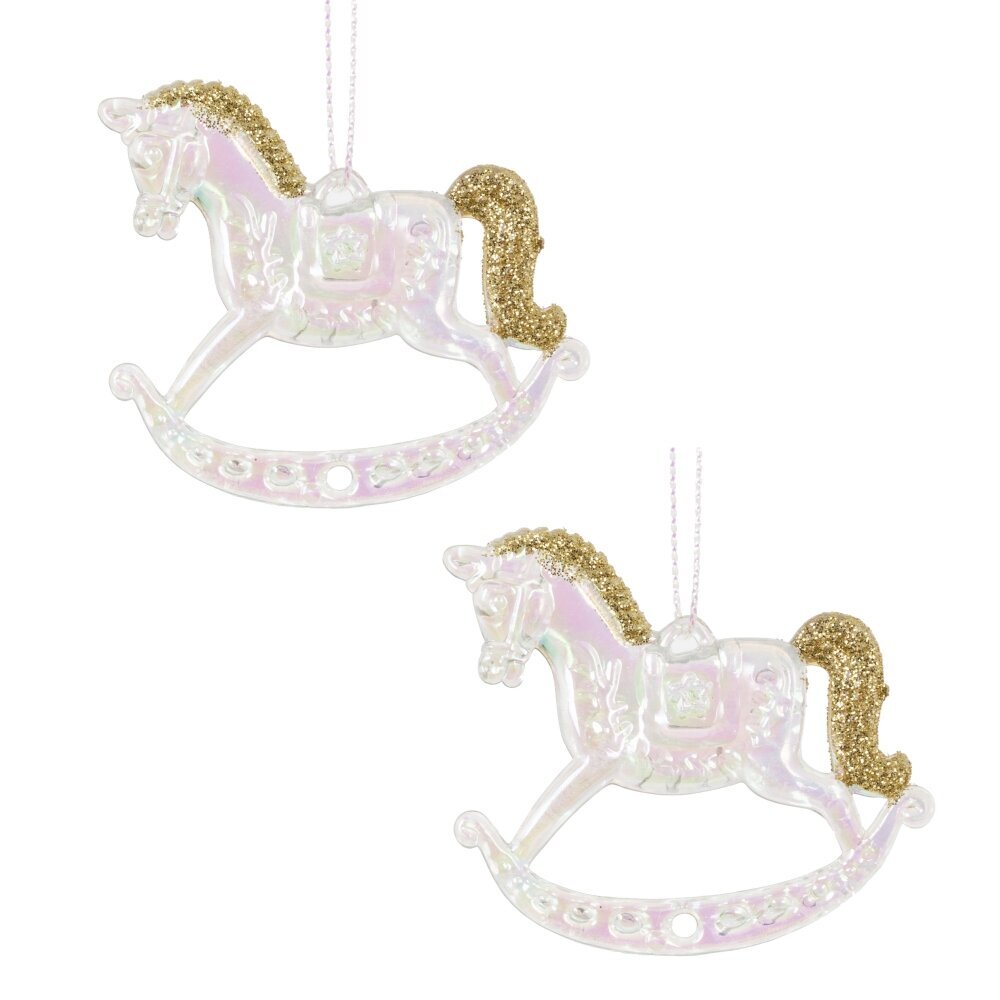 Новогоднее украшение "Лошадка" — это изящный набор из двух прозрачных фигурок лошадок-качалок, изготовленных из полиакрила. Каждая лошадка имеет перламутровый перелив. Грива и хвост окрашены глиттером. Эти очаровательные украшения прекрасно дополнят небольшую елочку или украсят окно, добавляя атмосферу праздника и волшебства в ваш дом. Мягкий свет, проходящий сквозь прозрачные украшения, создаст уютное и сказочное настроение в новогоднюю ночь.