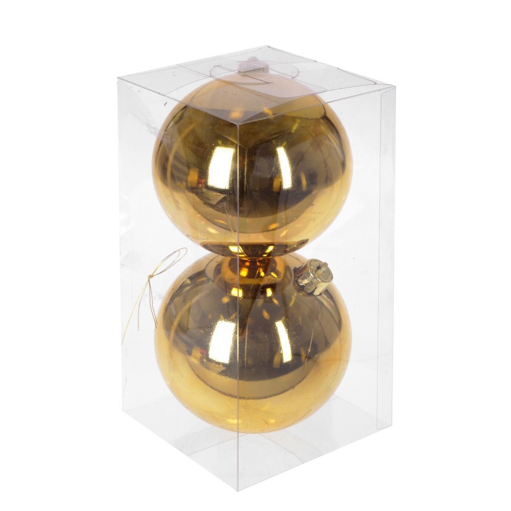 Набор из двух елочных шаров, диаметром 10 см. Выполнен в золотом цвете. В составе набора - пластиковые шары гланцевой фактуры. Прекрасно смотрятся в убранстве новогодней ели.