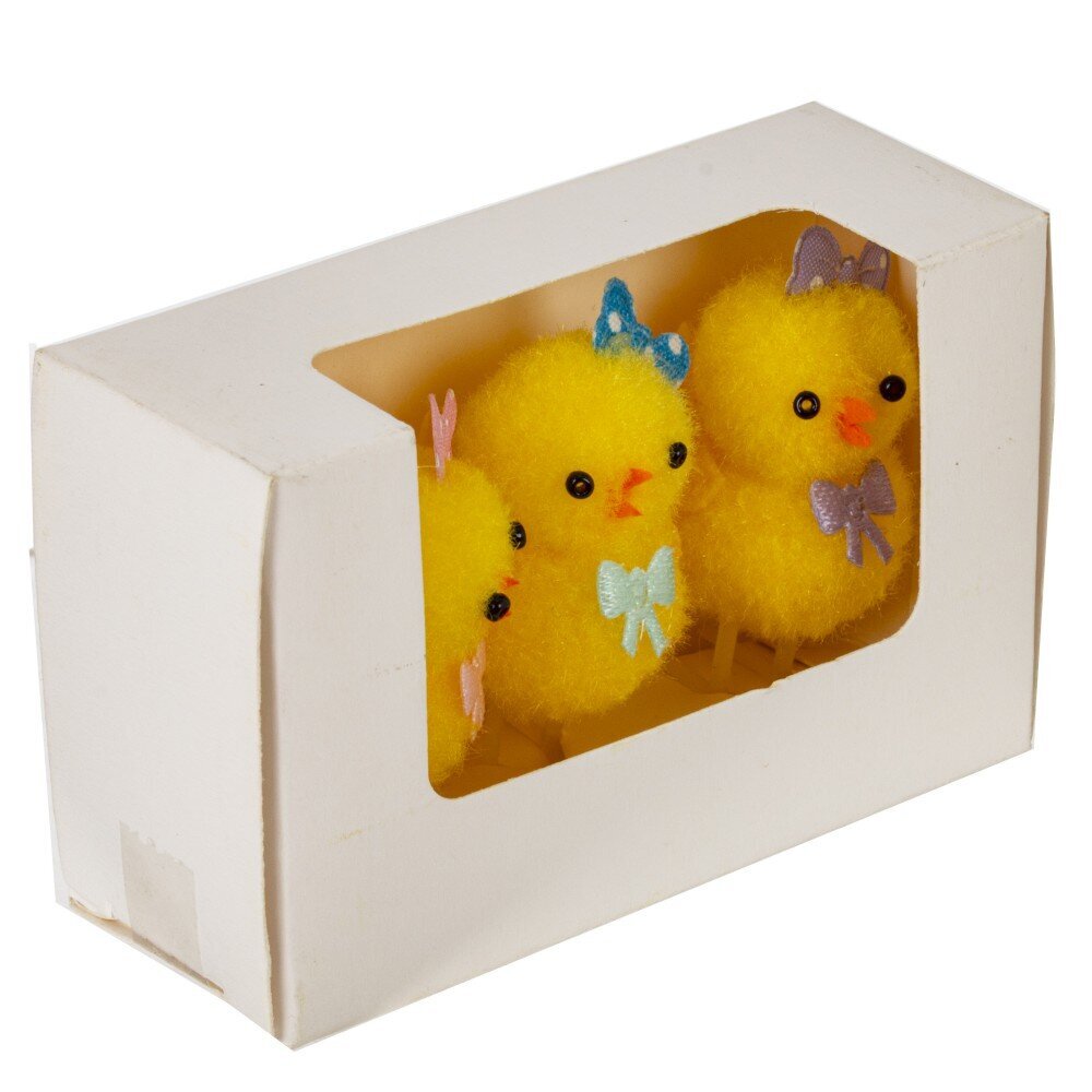 Фигурка «Пасхальный Цыпленок» – это очаровательный декоративный элемент, идеально подходящий для праздничного оформления. Она выполнена из полимерных и текстильных материалов, что придает ей мягкость и приятную фактуру. Ярко-желтое тело придает жизнерадостный вид, а маленькие черные глазки и крошечный клюв создают милое выражение. Изделие дополнено маленьким декоративным бантиком из ткани, что делает его еще более праздничным. Легкий, устойчивый и безопасный, этот цыпленок станет прекрасным дополнением к пасхальному декору: его можно использовать для украшения стола, корзинок с угощениями или как элемент композиции. Набор из трех штук.