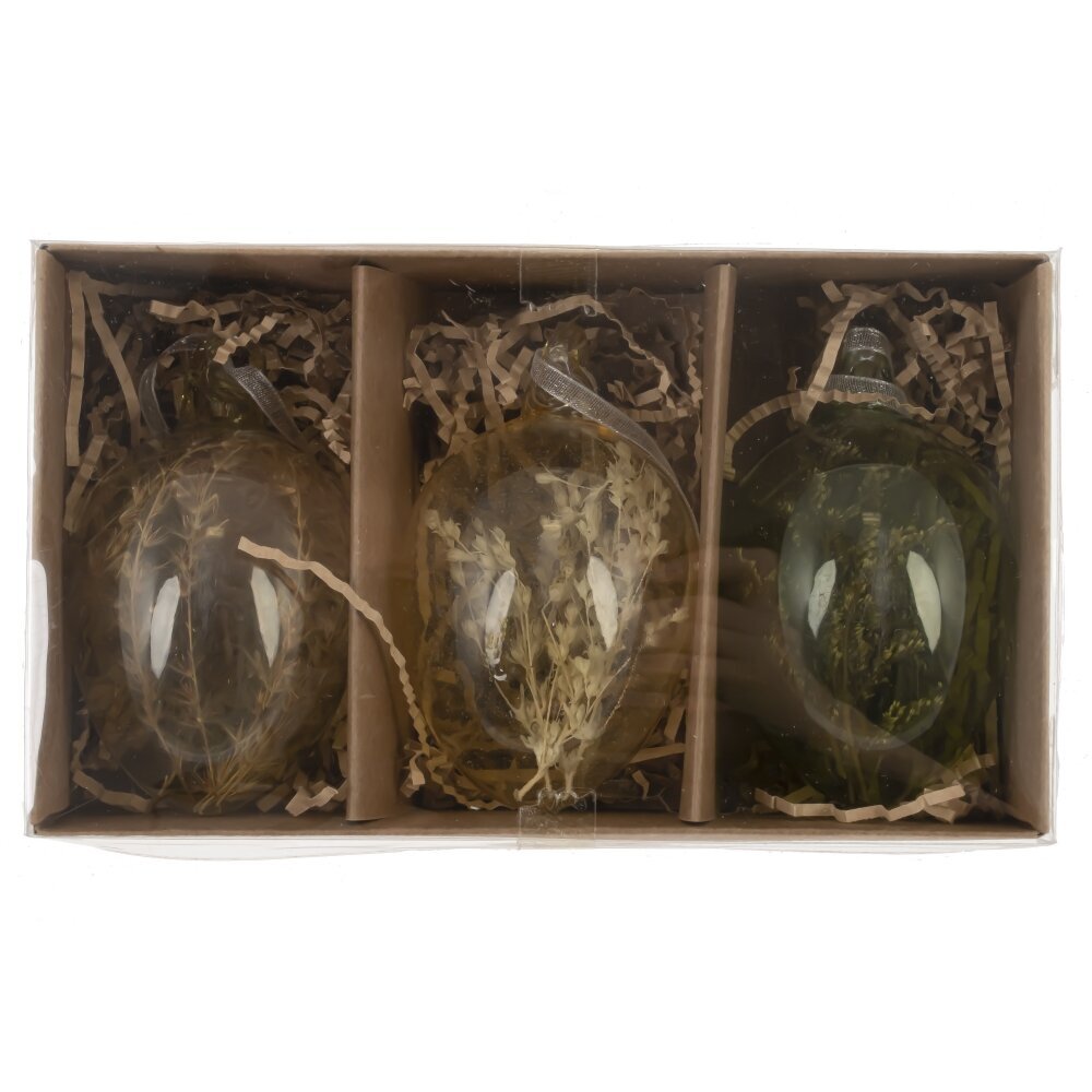Набор из трёх декоративных подвесных изделий в форме пасхального яйца станет изысканным украшением для вашего интерьера. Эти нежные изделия изготовлены из прозрачного стекла и наполнены натуральными сухоцветами, создавая эффект лёгкости и природной гармонии. Каждое яйцо имеет уникальный дизайн с разными оттенками и композициями цветов, что делает их стильным элементом декора. Идеально подходят для украшения пасхального дерева, праздничного стола или создания весенней атмосферы в доме. Благодаря изящной ленте их можно легко повесить на ветки, люстру или любой другой декор. Этот набор станет отличным подарком для ценителей ручной работы и красивых аксессуаров.