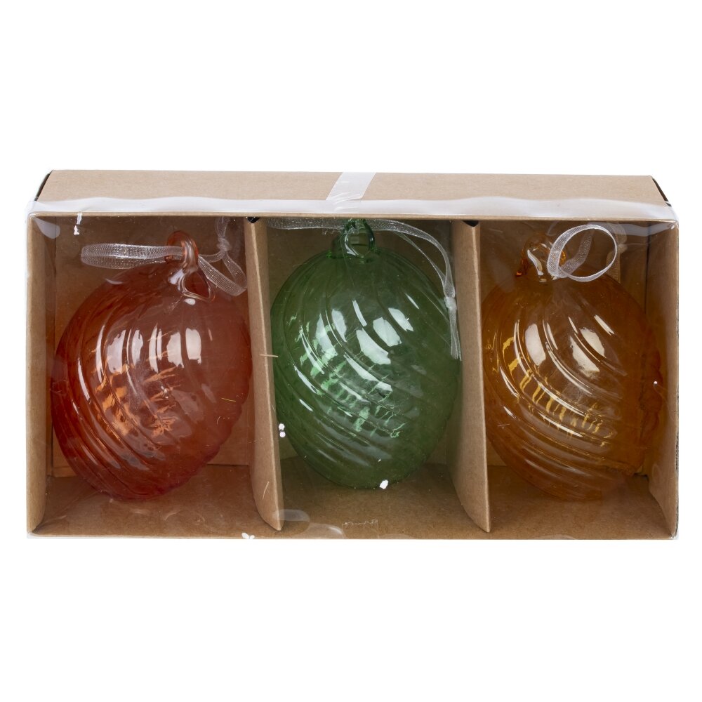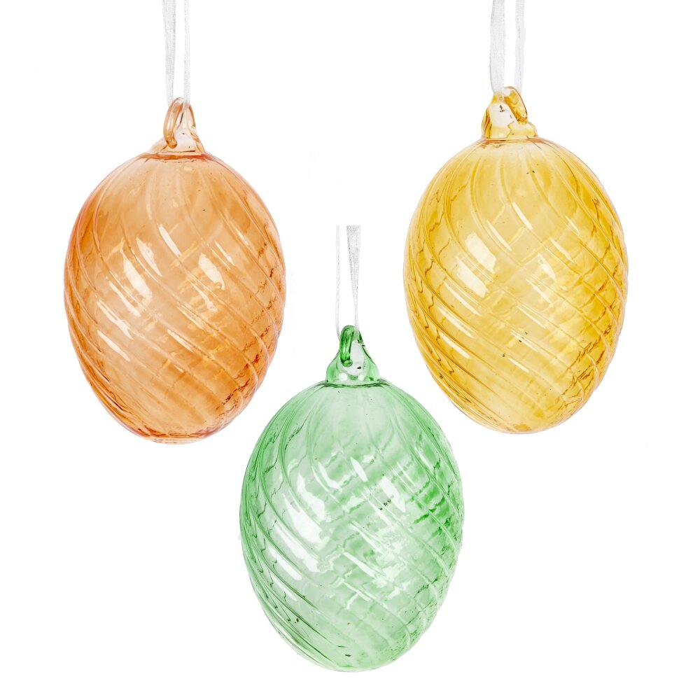 Набор из 3-х декоративных подвесных изделий «Яйцо пасхальное» – элегантное украшение для весеннего декора дома и праздничной сервировки стола. Изделия выполнены из прозрачного цветного стекла в нежных пастельных оттенках: зеленом, желтом и оранжевом. Рельефный узор по поверхности создает красивую игру света и делает каждое яйцо особенно нарядным. Подвески оснащены аккуратными ленточками, благодаря которым их удобно разместить на пасхальном деревце, веточках, люстре, в оконном проеме или использовать в композициях с цветами. Такой набор станет стильным акцентом интерьера и подчеркнет атмосферу светлого праздника Пасхи.