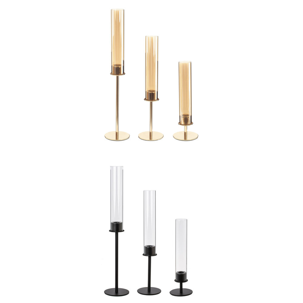 Оригинальный и изысканный набор из трех подсвечников позволит украсить интерьер Вашего дома. Изделие выполнено из стекла в форме фужера на длинной металлической ножке. С таким элементом декора ужин при свечах наполнится торжественной и праздничной атмосферой. Диаметр свечи до 3 см. Размеры подсвечников: 10*10*30/40/50 см.