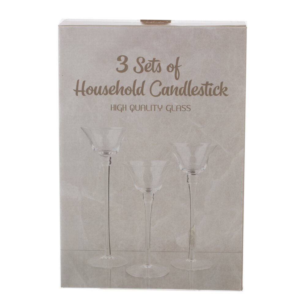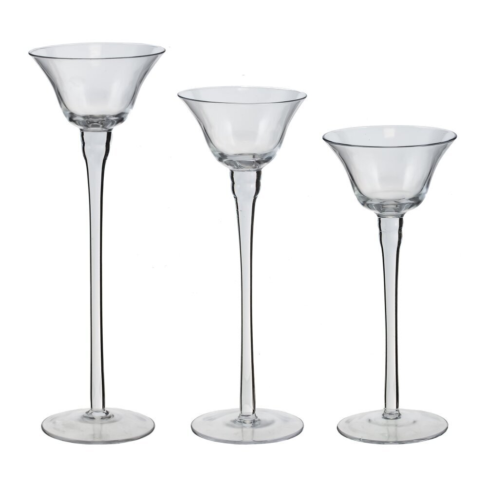 Элегантный набор из трех подсвечников из прозрачного стекла разной высоты. Каждая модель выполнена в форме изящного бокала: тонкая вытянутая ножка, устойчивое круглое основание и широкая чашеобразная верхняя часть, которая мягко рассеивает свет и создает ощущение «парящей» свечи. Подходят для чайных и небольших плавающих свечей. Универсальный минималистичный дизайн легко впишется в классический или современный интерьер, украсит праздничный стол, свадьбу, каминную полку или витрину. Подсвечники красиво смотрятся как вместе, создавая каскадную композицию, так и по отдельности. Уход прост: протирайте мягкой сухой тканью и устанавливайте на ровную поверхность.