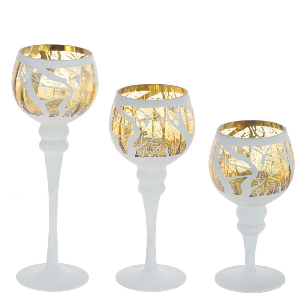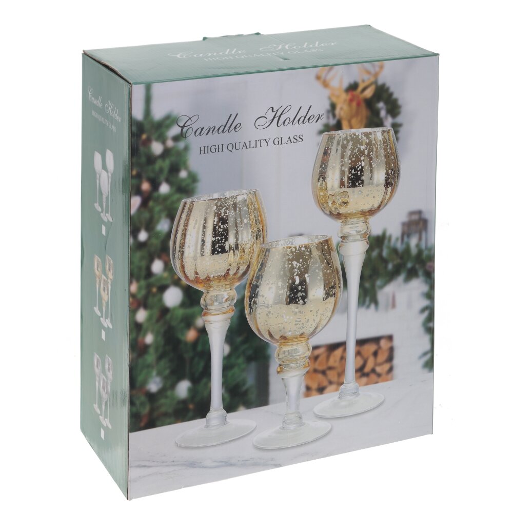 Набор из трех оригинальных стеклянных подсвечников на высоких ножках - прекрасный аксессуар для оформления праздничного стола. Он дополнит сервировку стола, подойдет для романтического вечера, или, просто украсит ваш дом. Размеры подсвечников: 11*11*30/25/20 см. Для свечи, диаметром 5 см.